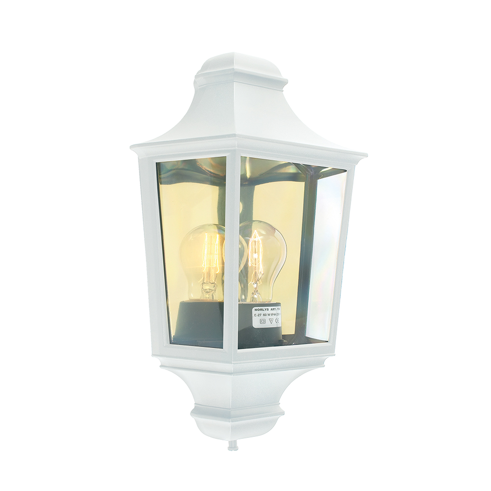 Armatur i gjuten aluminium, lackerad. Glas i klar polykarbonat. Väggmodell. IP54, Klass 2