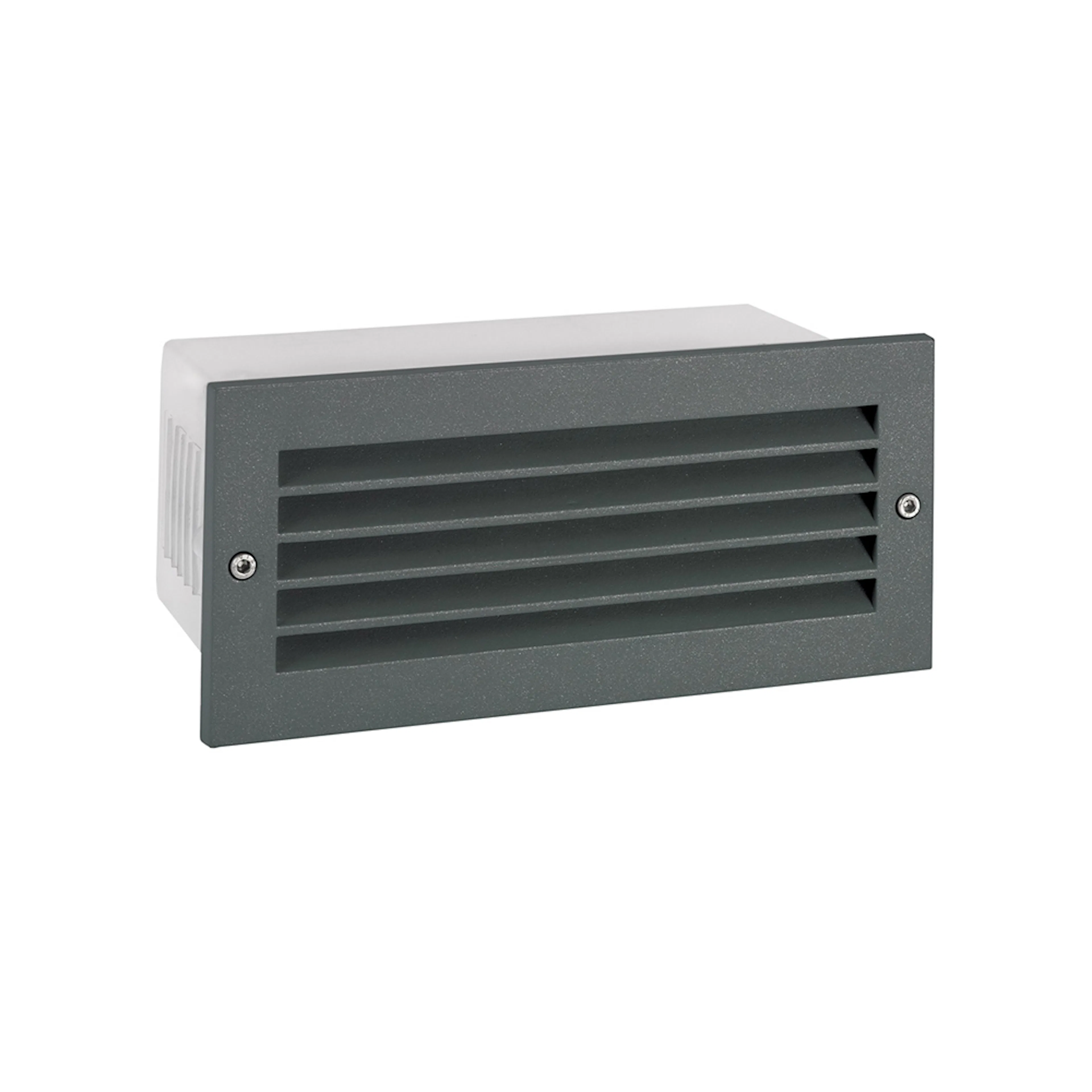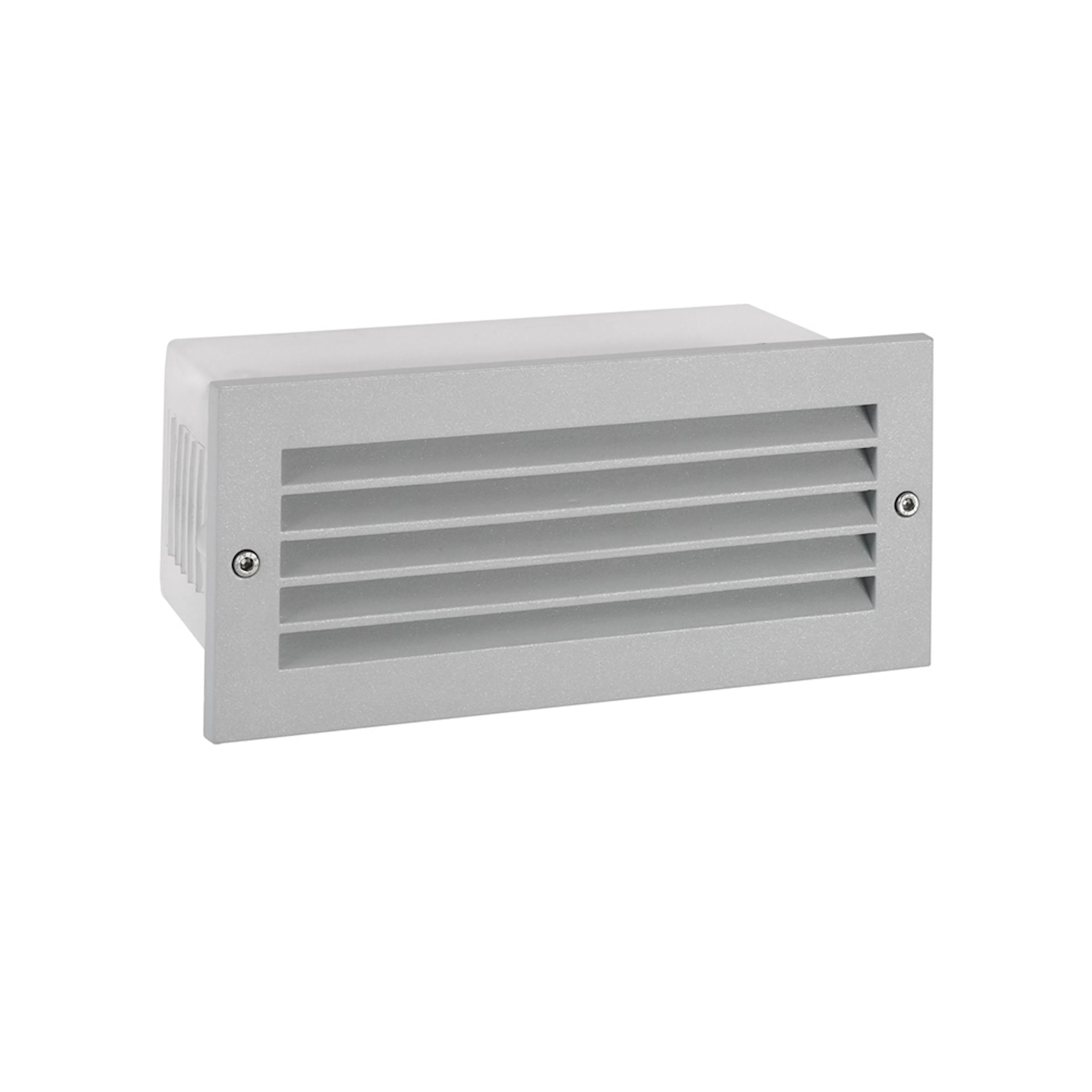 Infälld armatur i gjuten aluminium. Avskärmat ljusutsläpp (grill). Lackerad i en aluminium. IP65, Klass I. LED modul, 981 Lumen, 3000 Kelvin