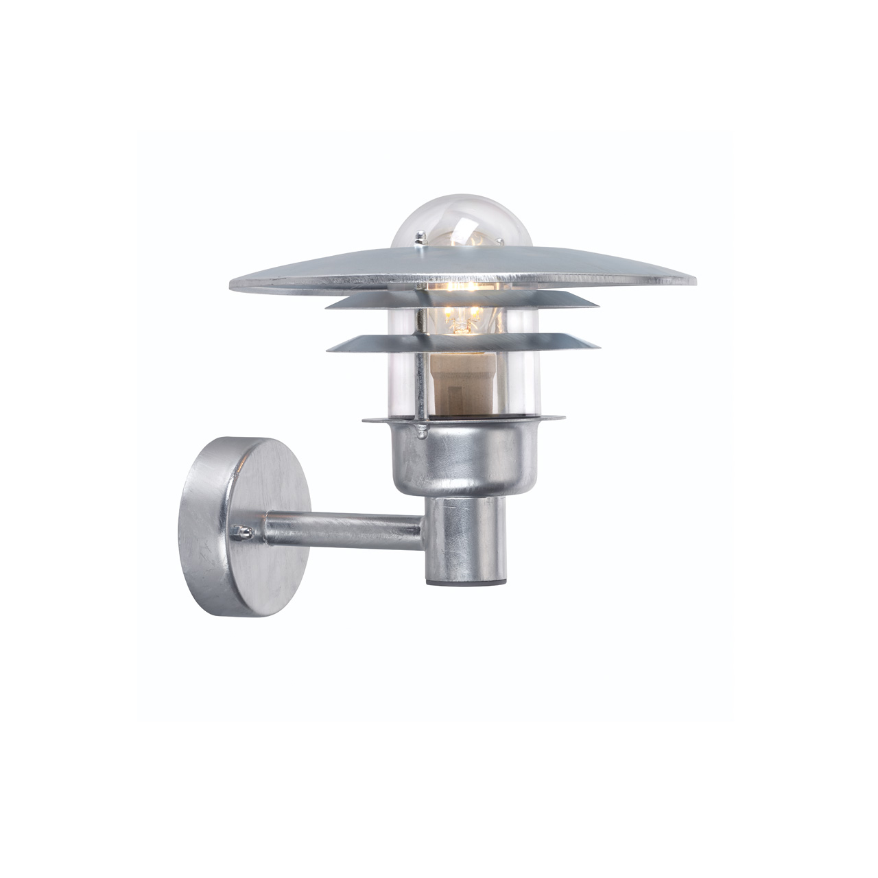 Armatur i galvaniserad eller svartlackerad stålplåt. Klar polykarbonatkupa. Hörnfäste och distansplatta finns som tillbehör.