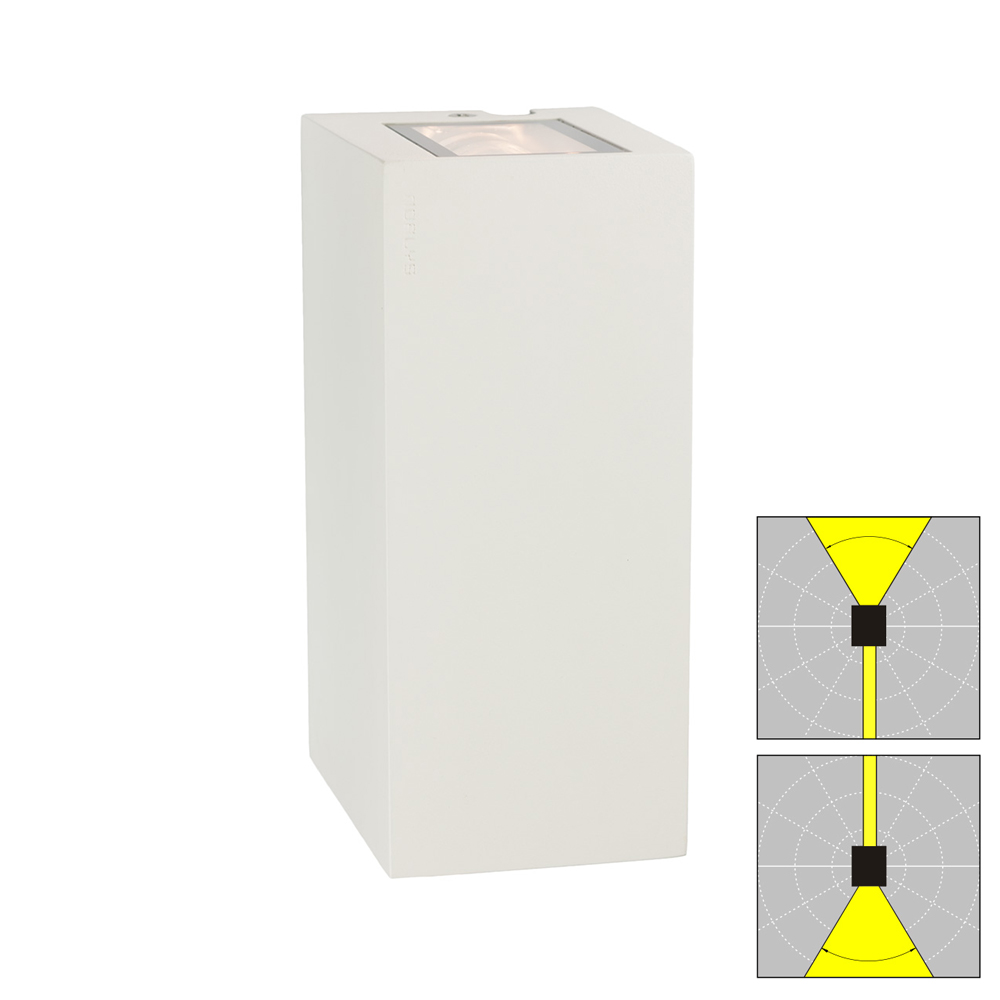 Fasadbelysning tillverkad i gjuten aluminium. Finns i tre olika färger. Klart glas. Kan fås med antingen 3000K och 4000K. Finns med flera varianter av ljusspridning