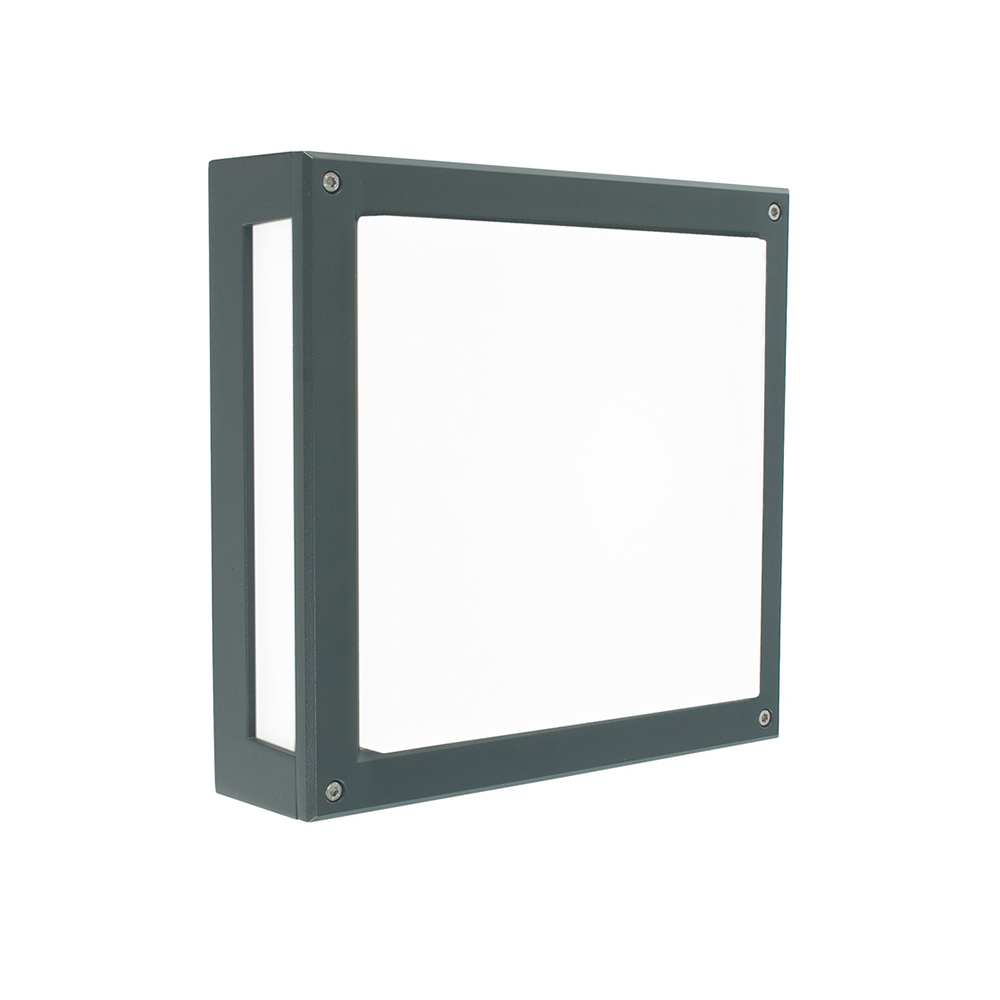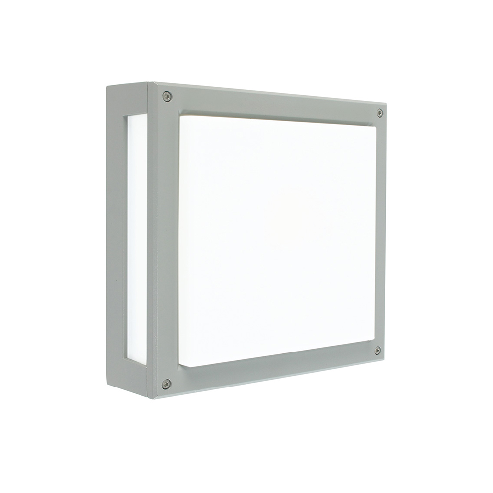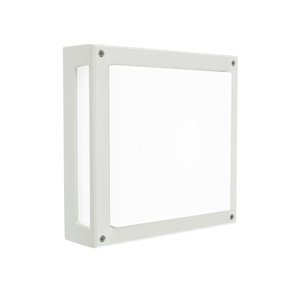 Armatur i gjuten aluminium. Väggmodell, passar även som takarmatur. Opalvit polykarbonat. I denna serie finns det även en modell med sensor styrning