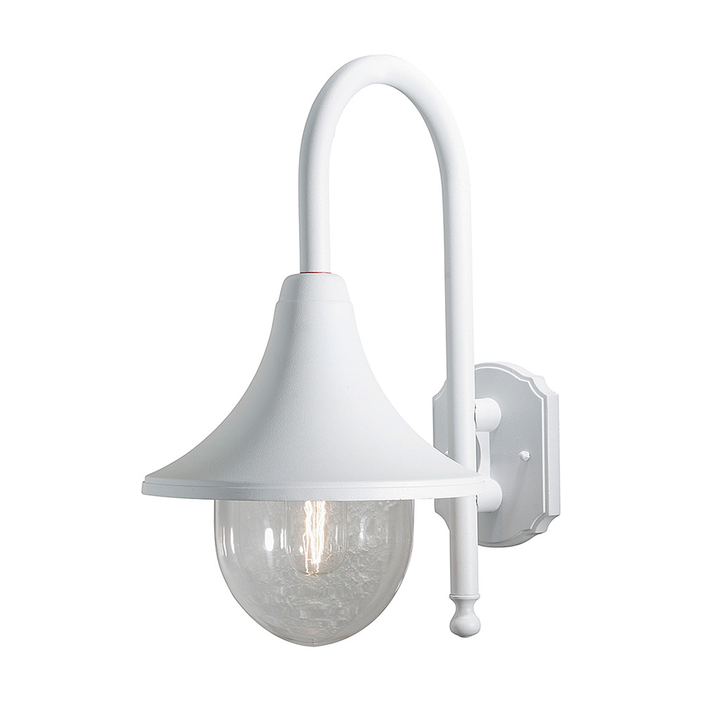 Vägglykta Gnosjö Konstsmide Bari E27 Ned är en elegant väggbelysning i klassisk design anpassad för utomhusbruk. Den har klart akrylglas och har IP 44-klassning. Vägglampan levereras utan ljuskälla.