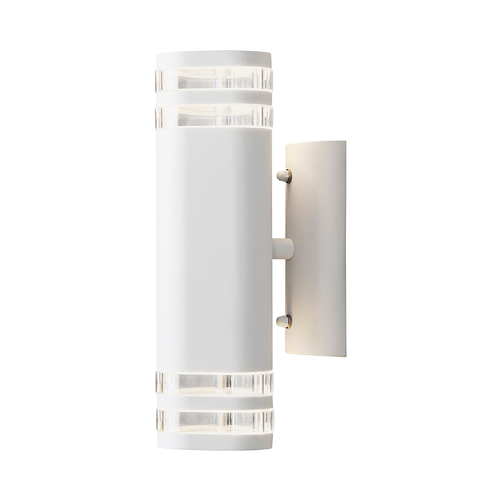 Vägglykta Gnosjö Konstsmide Modena 3 Upp/Ned GU10 är en modern fasadbelysning som har en kupa i klarglas och plastglas. Den lyser både uppåt och nedåt och levereras utan ljuskällor.