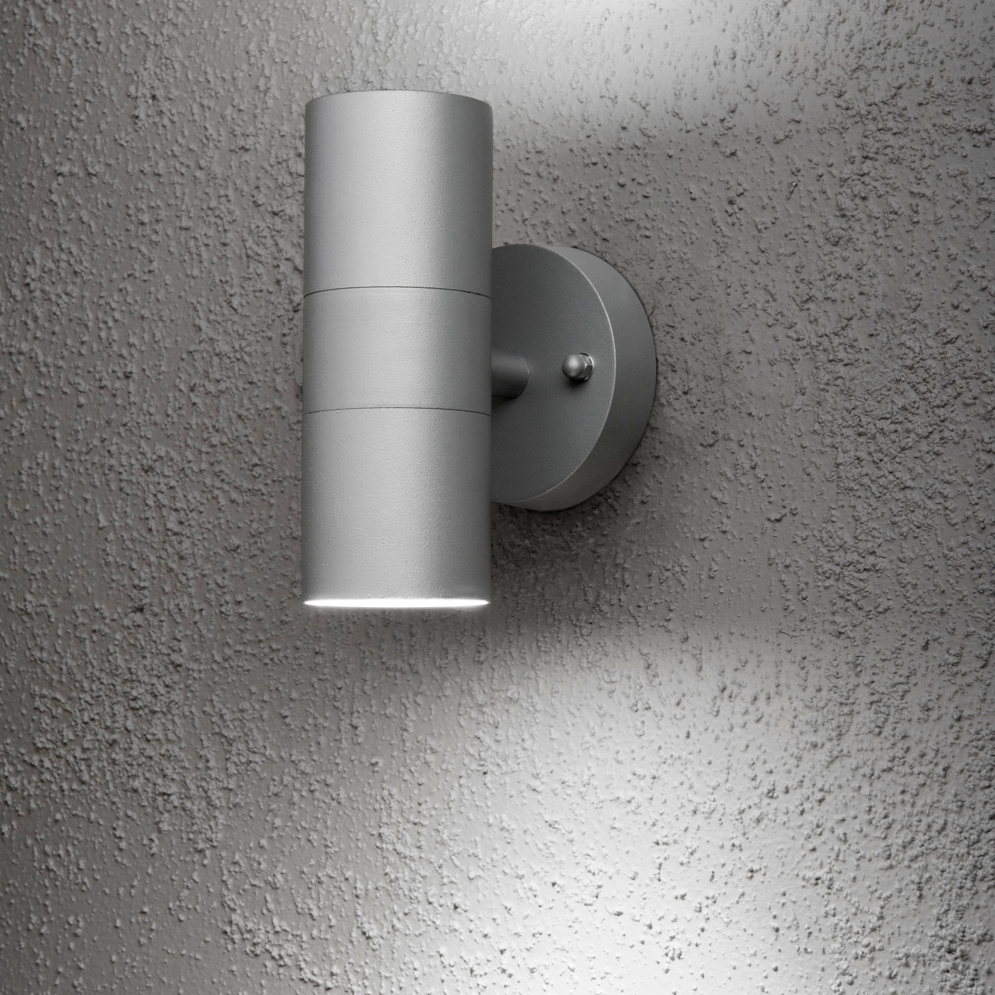 Vägglykta Gnosjö Konstsmide Modena Upp/Ned GU10 är en stilren fasadbelysning som lyser både uppåt och nedåt vilket skapar vackra skuggor på väggen. Den levereras utan ljuskälla.