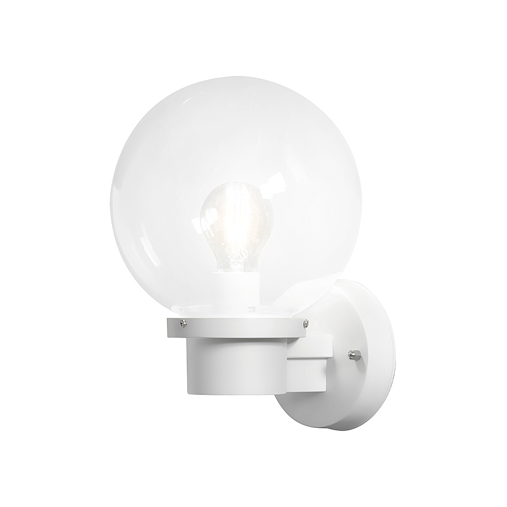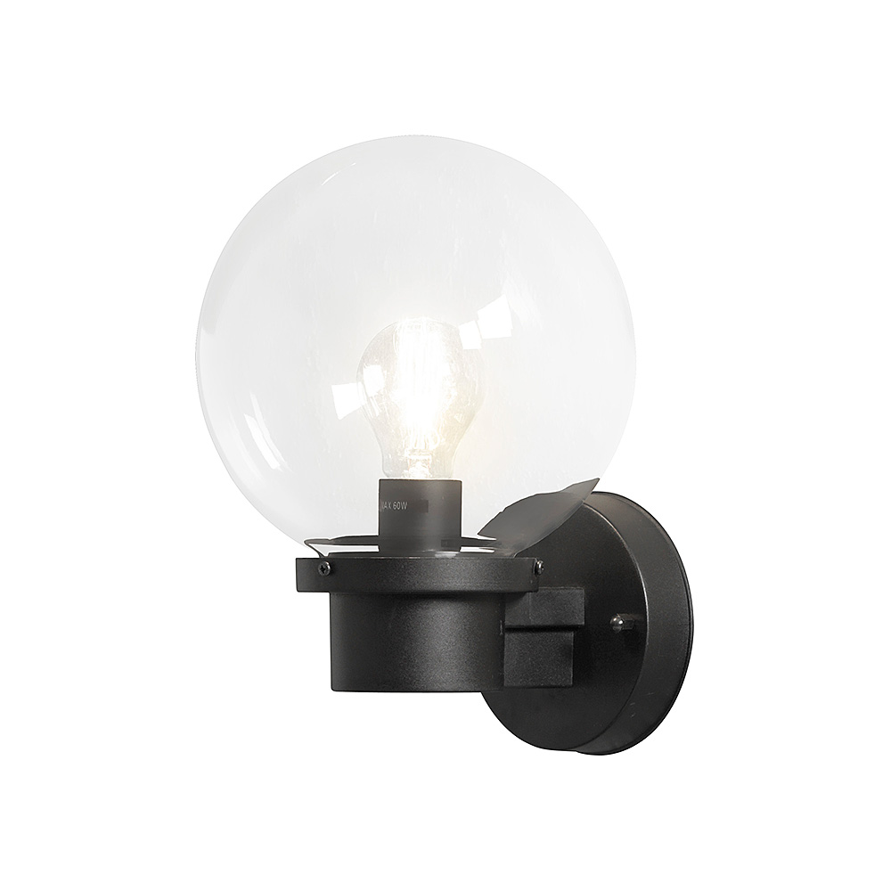 Vägglykta Gnosjö Konstsmide Nemi E27 Skymningsrelä är en klassisk fasadbelysning med en stor kupa i klart glas och skymningsrelä. Den levereras utan ljuskälla.