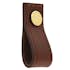 Läderflärpen Avio har dekorerats med en markerad söm som löper längs med kanten. Knoppen är tillverkad i massiv mässing och finns i flera olika utseenden.