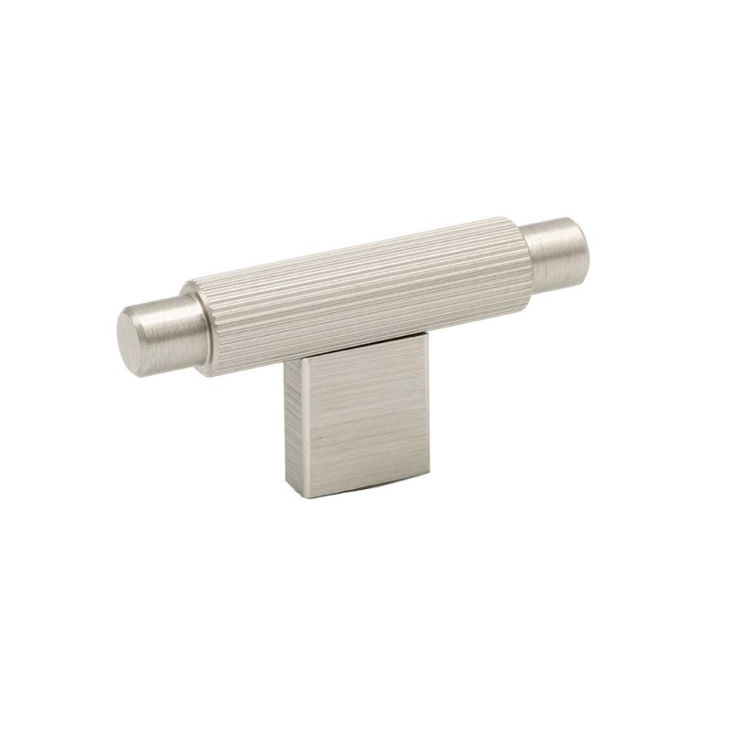 Arpa är en elegant serie med industriell design och en räfflad yta av ränder. Arpa finns som T-knopp med och utan bricka och handtag i tre längder med eller utan bricka.