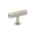 Knopp T Rille är en T-formad knopp med en räfflad yta med ränder. Den räfflade ytan ger ett bra grepp samtidigt som den ger en känsla av exklusivitet. Knoppen passar utmärkt för köksluckor, byrålådor och garderober.