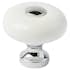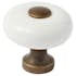 Porslinsknopp med fot och topp i metall.
