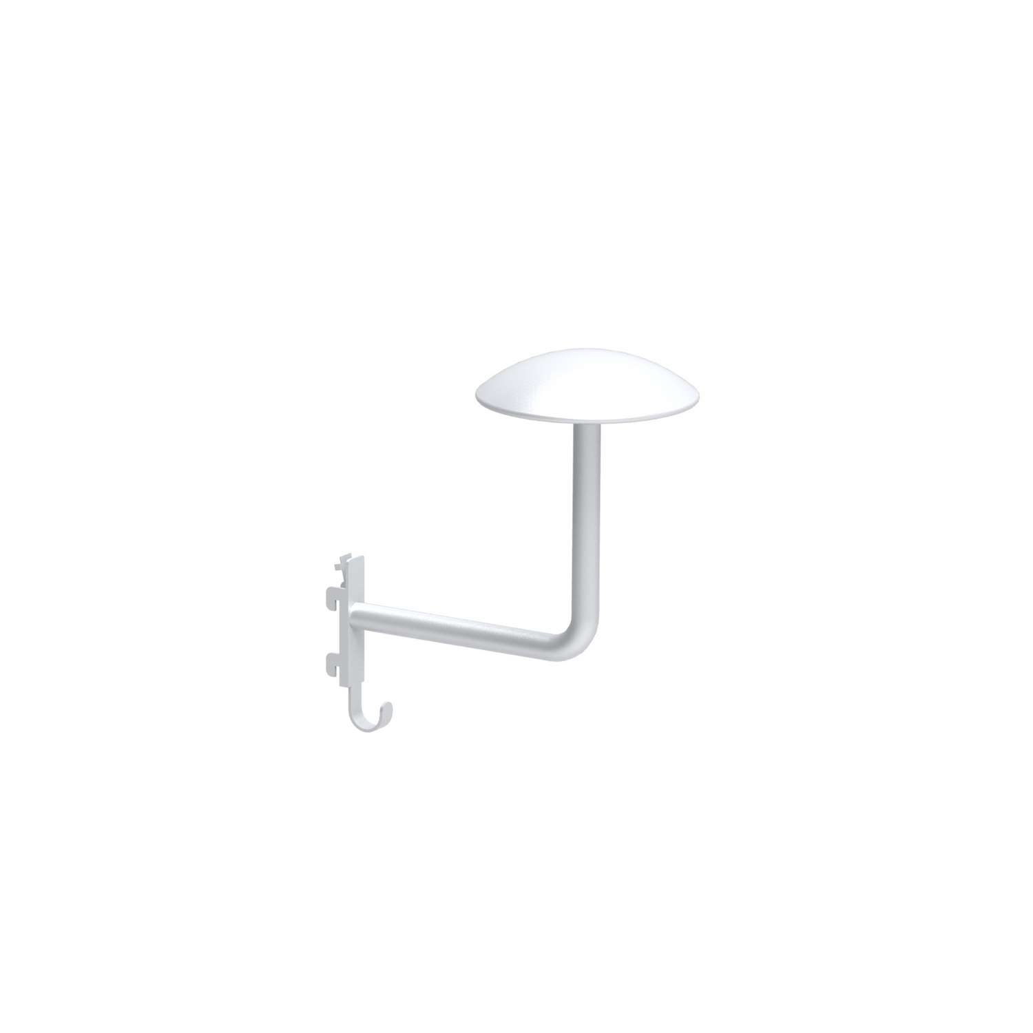 Hjälmkrok Hänga Wide från Lundbergs gör att du får ordning på dina kepsar och hjälmar. Kroken klickas enkelt i väggfästet eller skenan och låses fast med en spärr. Den välvda plattan är 100 mm i diameter.