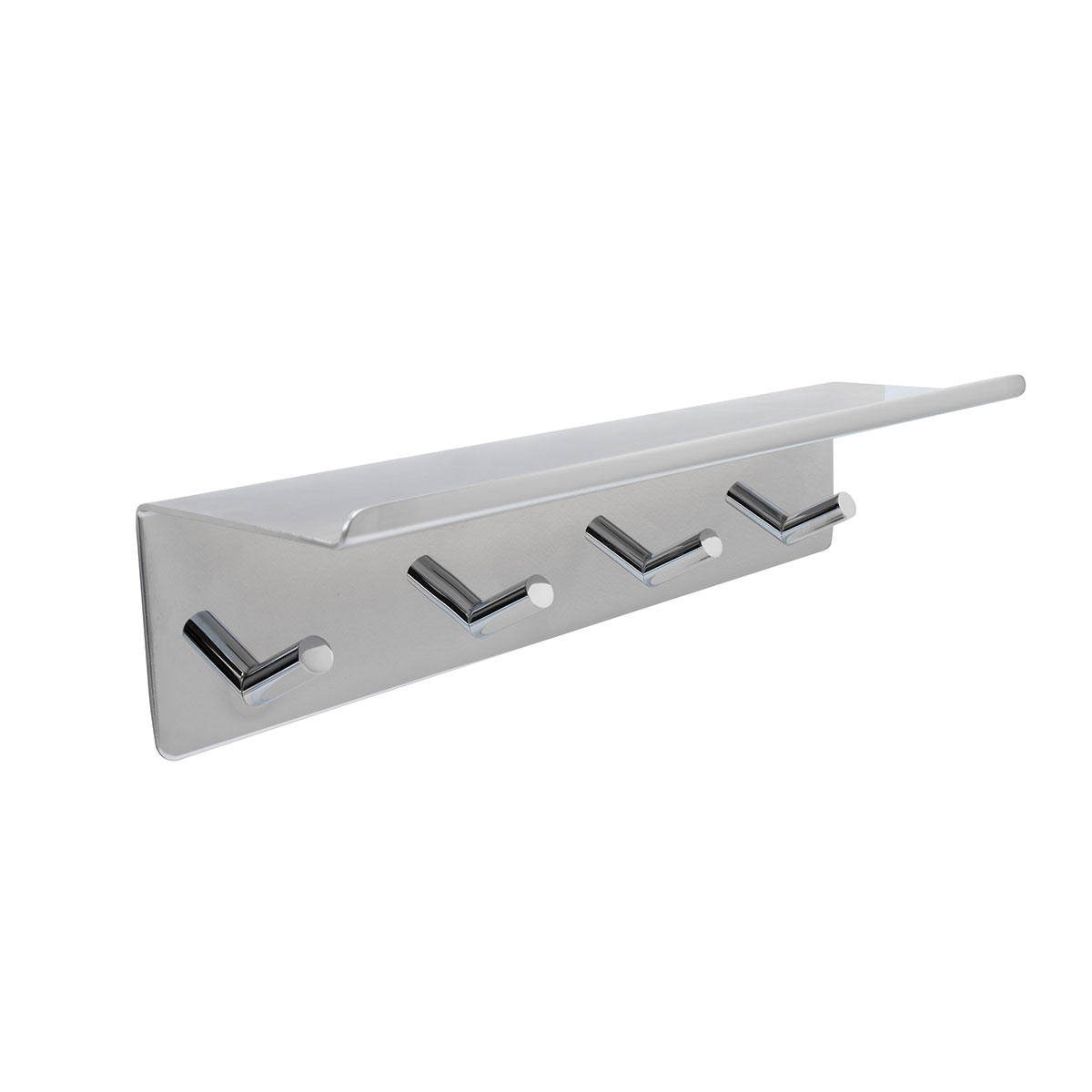 Kroklist Base med fyra funktionella krokar och hylla är den perfekta lösningen för att uppfylla dagens behov i badrummen samtidigt som den erbjuder en stilren design.