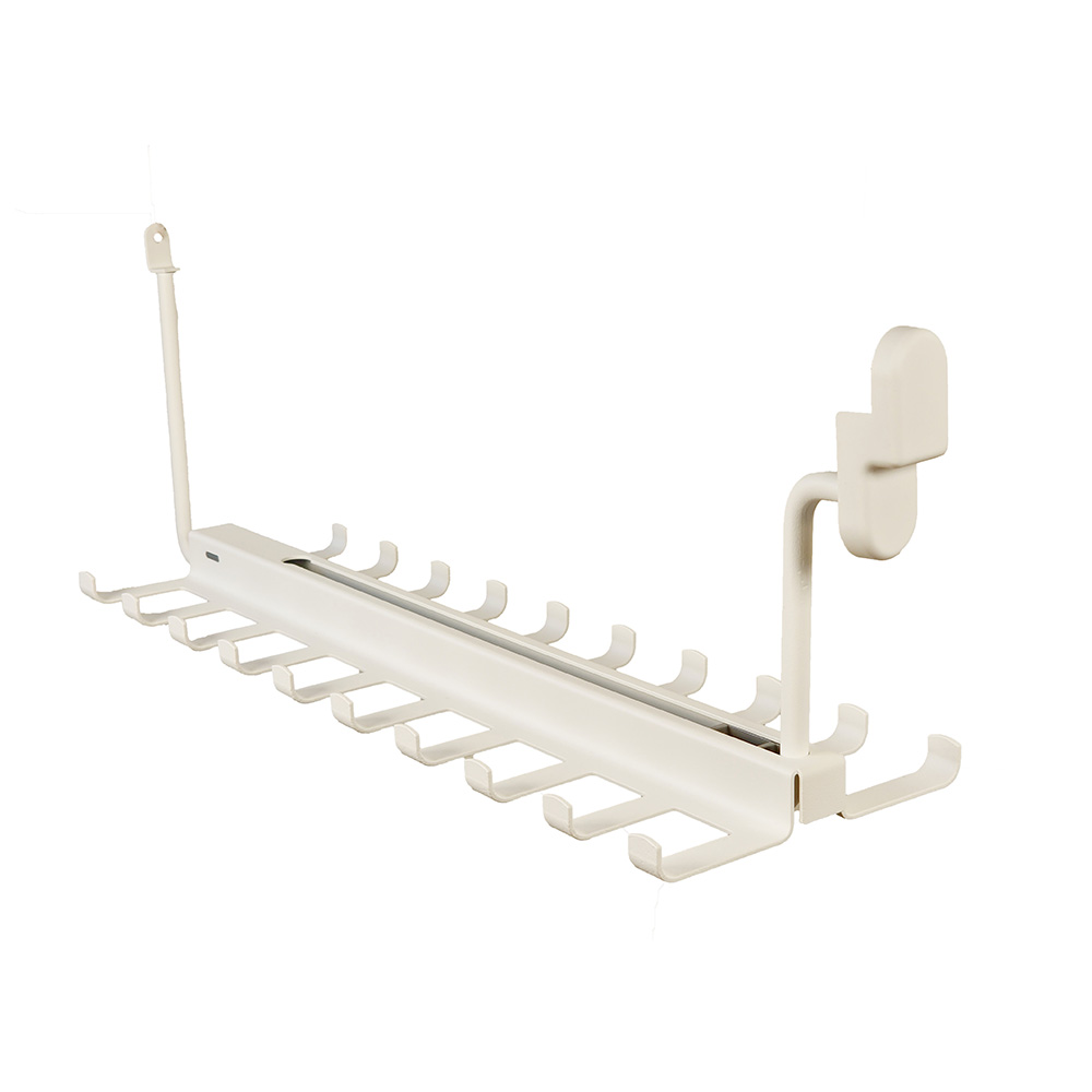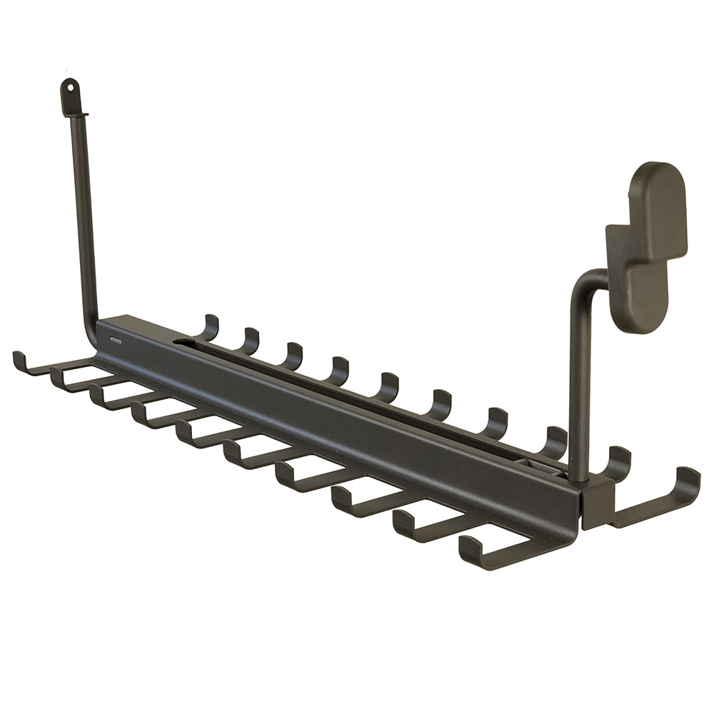 Förbättra ordningen på dina accessoarer med vår utdragbar slips- och bälteshållare, med 20 krokar som ger ordning och översikt över dina slipsar, bälten och halsdukar. Den installeras enkelt under en trådhylla D: 40.