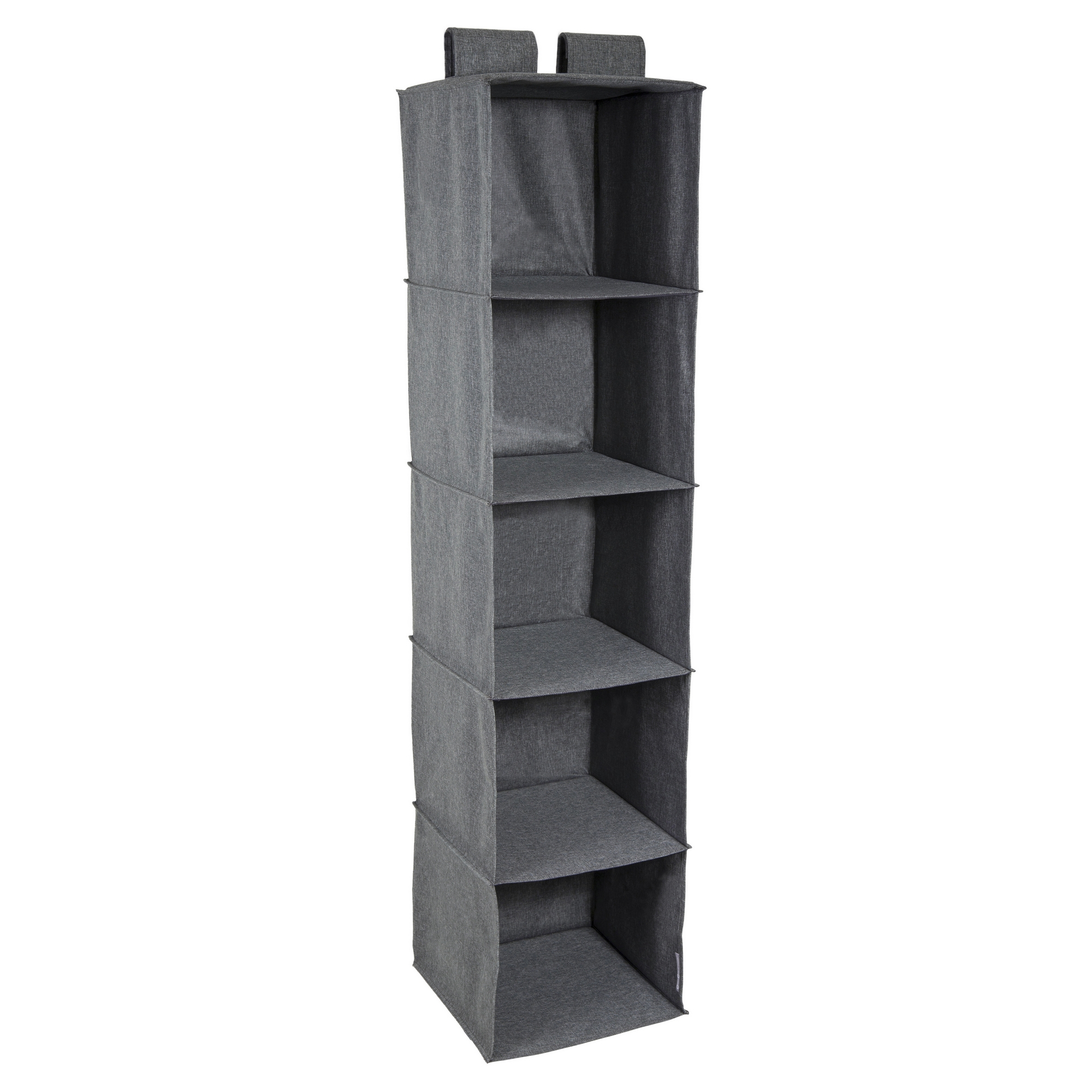 Garderobsförvaring Hanging Closet Organizer från Bigso Box of Sweden är ett praktiskt förvaringsalternativ i textil som kan hängas i garderoben. Denna förvaringslösning har fem fack som du kan förvara allt från tröjor till skor. Den hängs på garderobsstången med starka kardborreband.