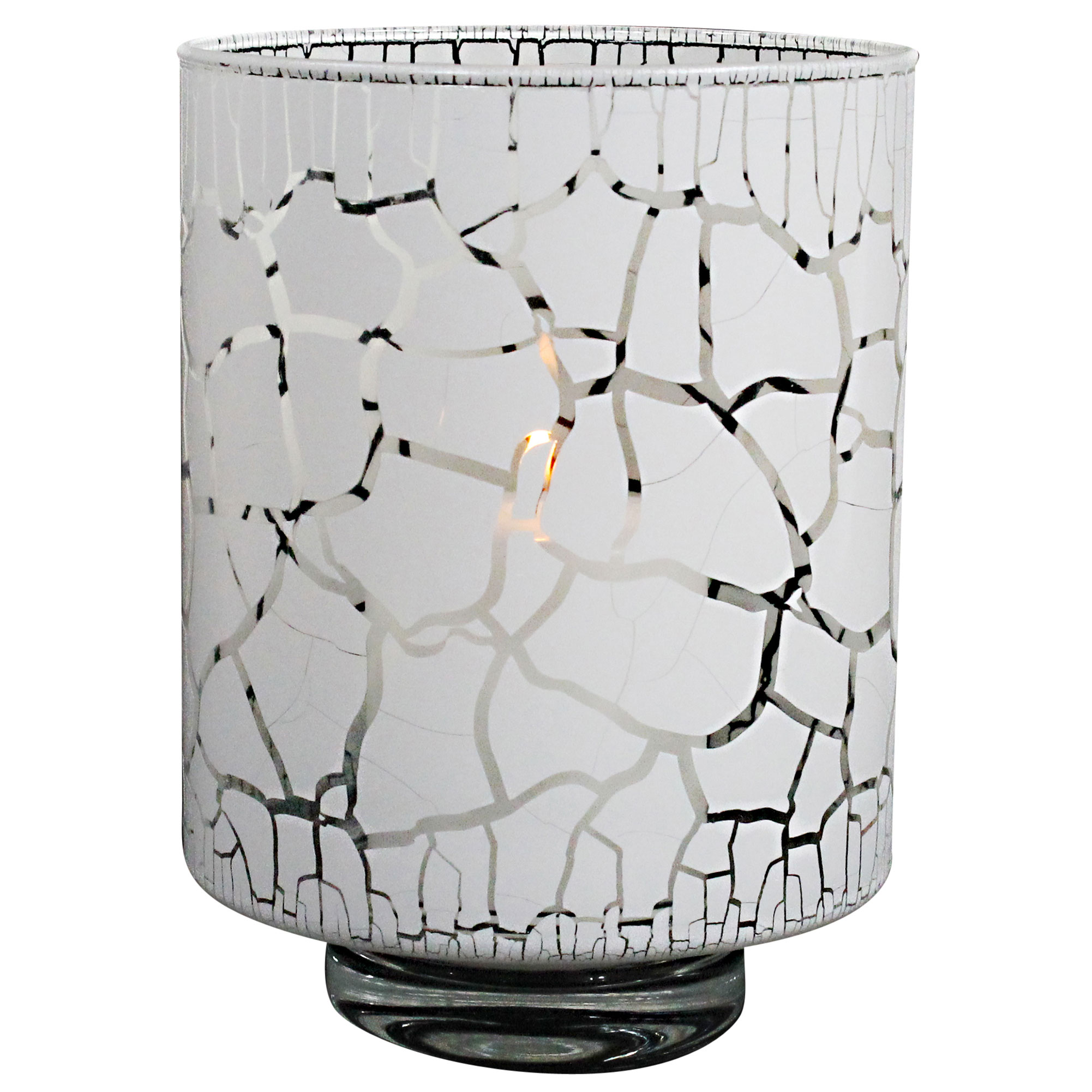 En iögonfallande stormlykta/vas från serien Desert av Nybro Glasbruk. Med ett skapat mönster av krakelerad effekt ger denna vackra pjäs ett vackert och stämmningsfullt sken. Stormlyktan fungerar precis lika bra som en vas för färska snittblommor.