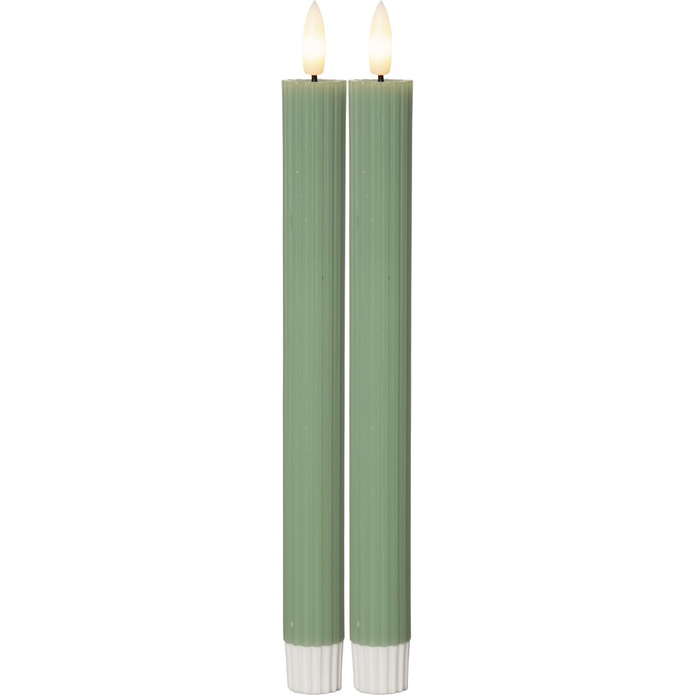 2 pack vita antikljus i vår Flamme Stripe serie, gjorda i vax i med en räfflad-randig yta. Ljusen har en mycket naturtrogen låga som lyser med varmvitt sken. De har timerfunktion vilket gör att ljusen lyser i 6h per dag i ca 30 dagar. De drivs av 2 AAA batteri för varje ljus, dessa ingår ej.