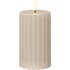 Flamme Stripe är ett blockljus gjord av vit vax med en räfflad-randig yta. Ljuset är cirka 8x15cm inklusive lågan. Detta elektriska ljus blir en vacker dekoration, både ensam och i grupp ihop med övriga ljus från vår Flamme serie. Den har timerfunktion och när brytaren är på timerläget lyser ljuset i ca 30 dagar med en vacker realistisk låga i varmvitt. Den drivs av 2 AA batterier, dessa ingår ej.