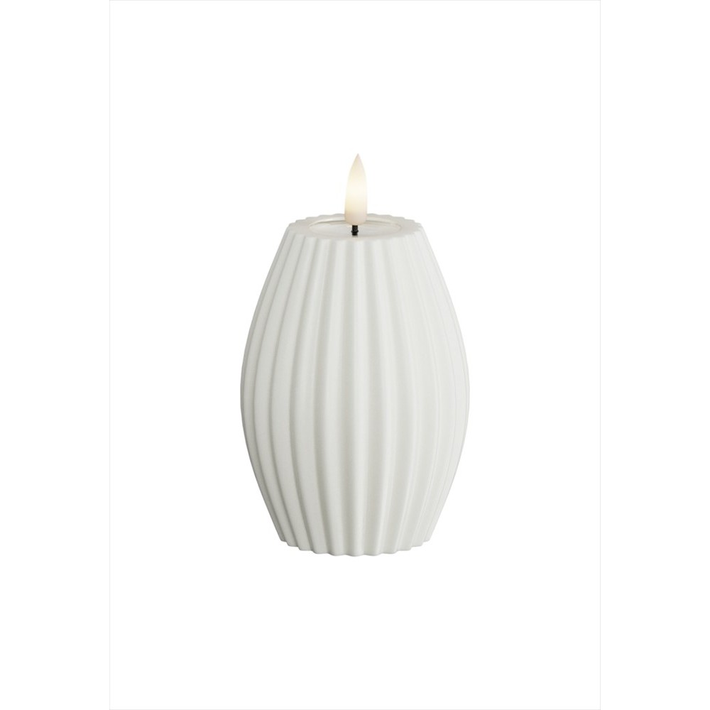 Skapa en sofistikerad och mysig stämning med detta LED blockljus i en vacker sandfärg. Med sin räfflade yta och eleganta design ger det ett mjukt och varmt ljus i ditt hem. Tillverkat av paraffinvax och resin för både hållbarhet och säkerhet, utan att behöva oroa dig för öppen låga.