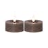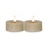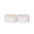 Flamme Flow är ett 2 pack batteridrivet värmeljus i paraffinvax i en större storlek; 7x5,5cm inklusive lågan.