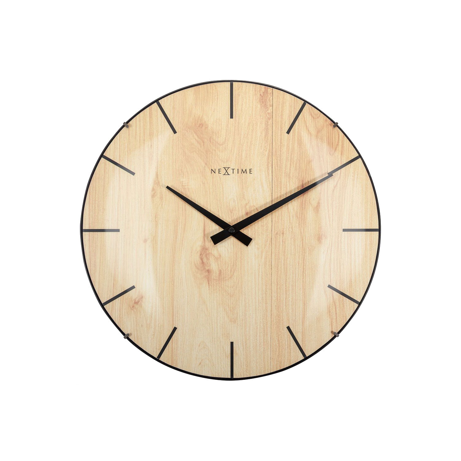Väggklocka NeXtime Edge Wood Dome är en väggklocka med en urtavla i trä och kupolformat glas som ger en elegant känsla. Klockan är ljudlös.