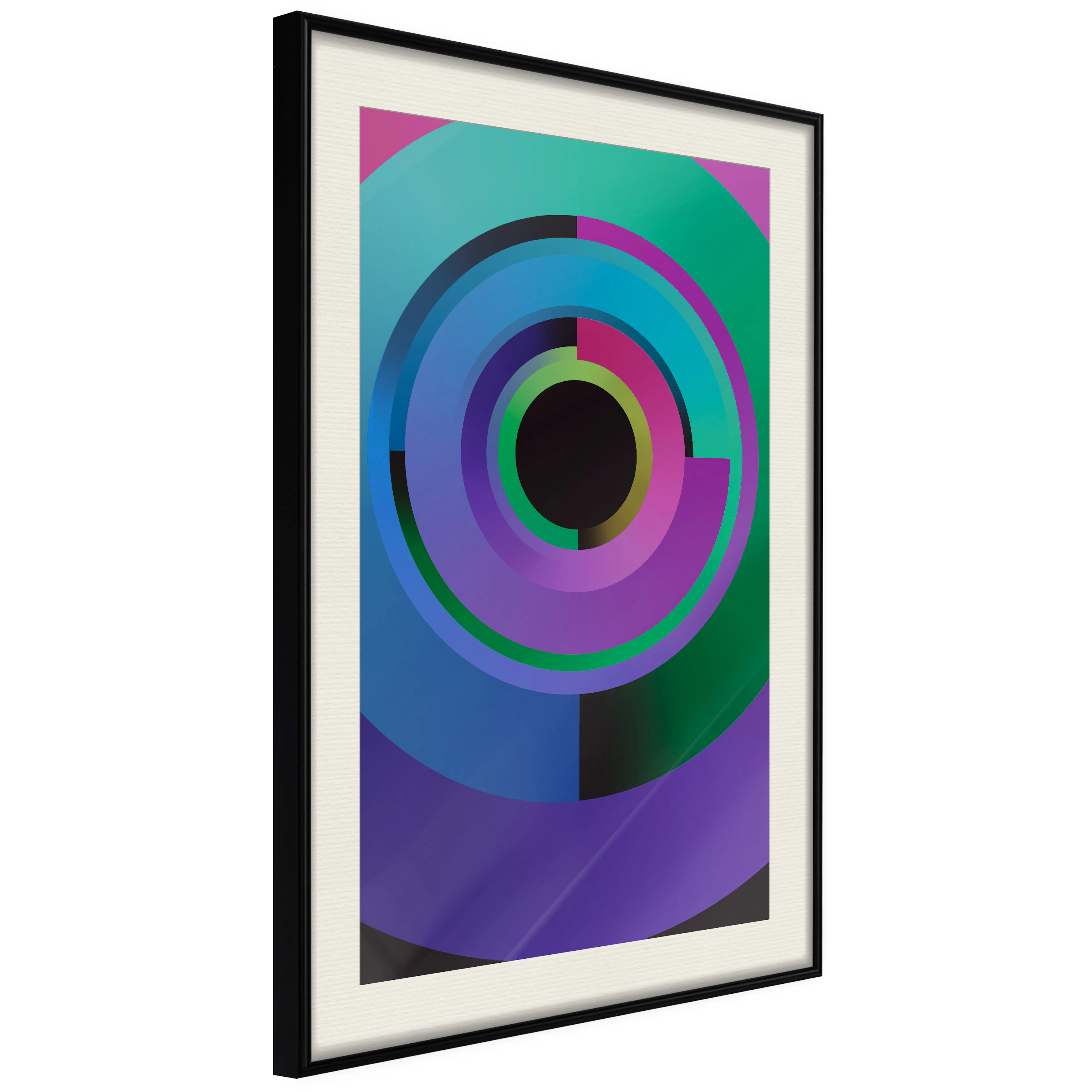 Passepartouten i écru betonar färgern på affischen och skapar en extra kontrast mellan grafiken, ramen och väggen. Dessutom ger den ramen ett svagt tredimensionellt intryck och fungerar även som ett skyddslager som ytterligare skyddar afischen. Affischen är säkrad med akrylglas och en hänganordning finns på ramens baksida.