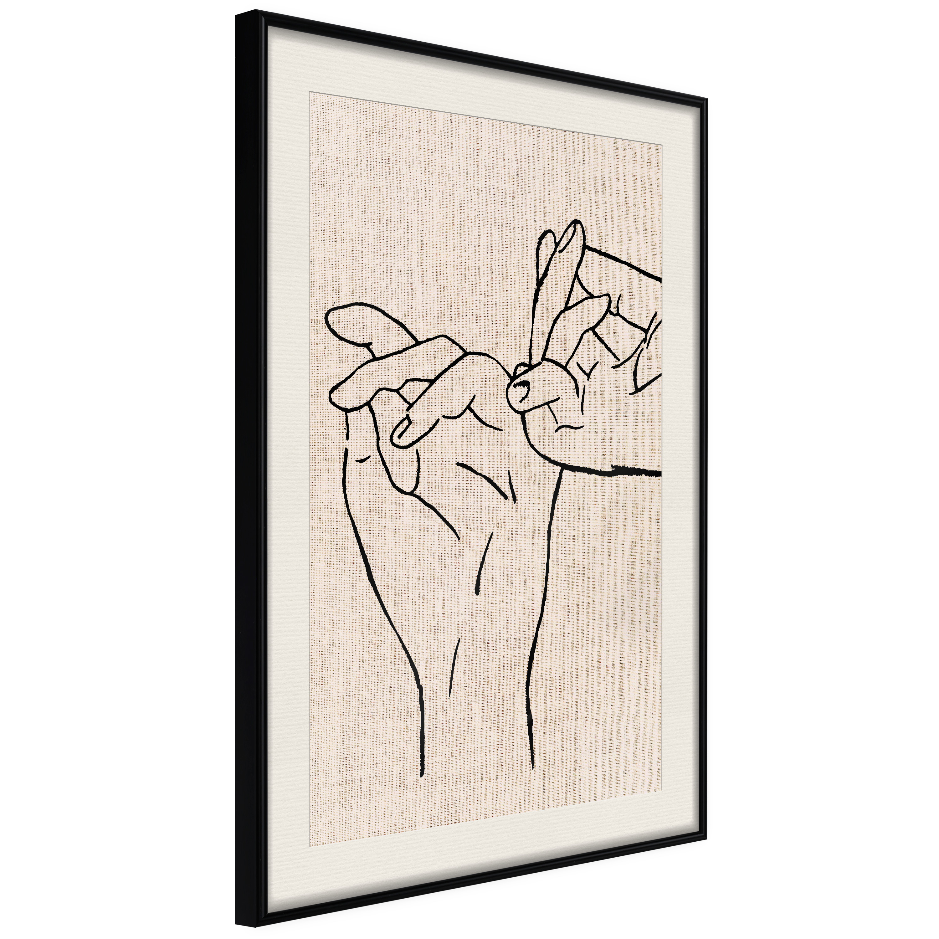 Passepartouten i écru betonar färgern på affischen och skapar en extra kontrast mellan grafiken, ramen och väggen. Dessutom ger den ramen ett svagt tredimensionellt intryck och fungerar även som ett skyddslager som ytterligare skyddar afischen. Affischen är säkrad med akrylglas och en hänganordning finns på ramens baksida.