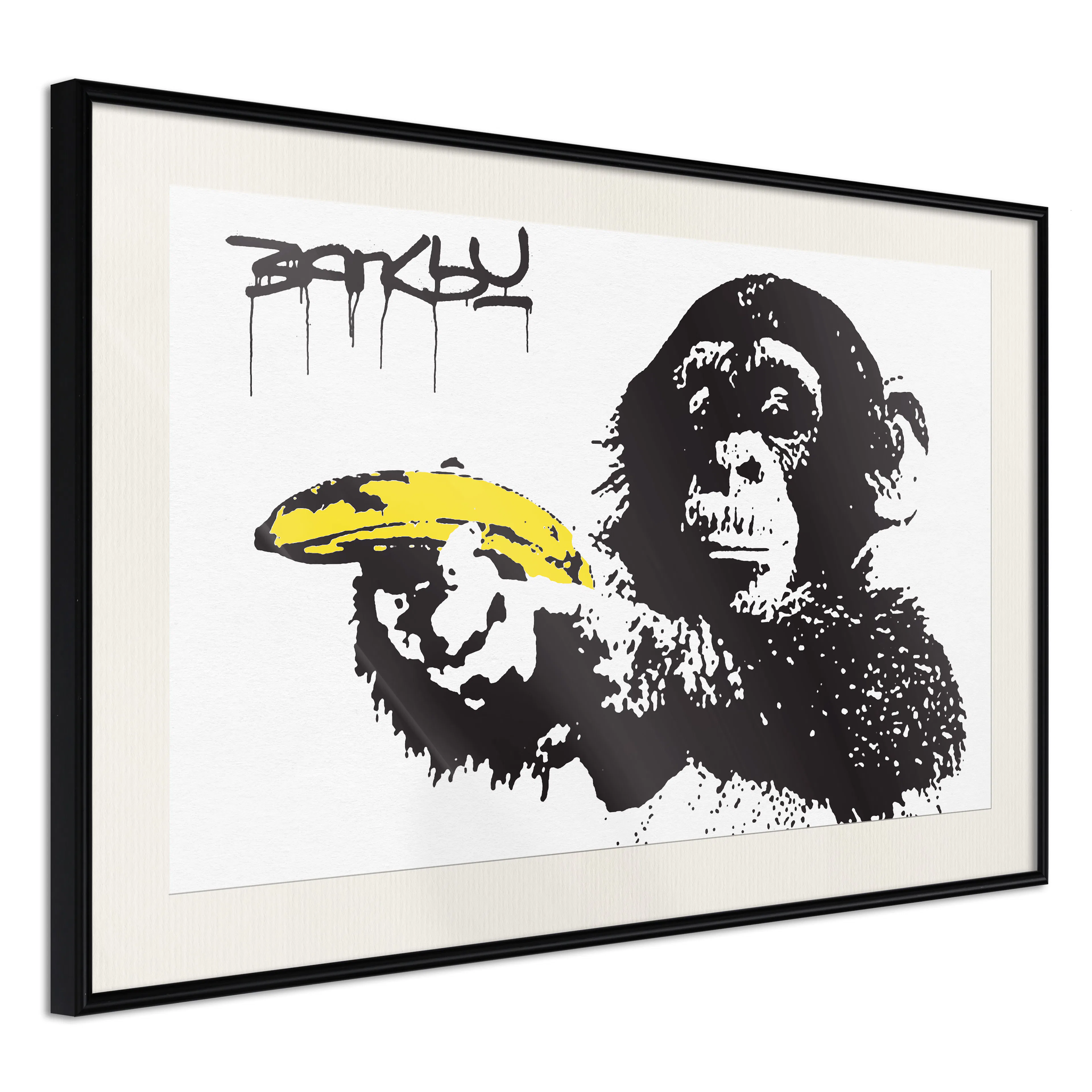 Passepartouten i écru betonar färgern på affischen och skapar en extra kontrast mellan grafiken, ramen och väggen. Dessutom ger den ramen ett svagt tredimensionellt intryck och fungerar även som ett skyddslager som ytterligare skyddar afischen. Affischen är säkrad med akrylglas och en hänganordning finns på ramens baksida.