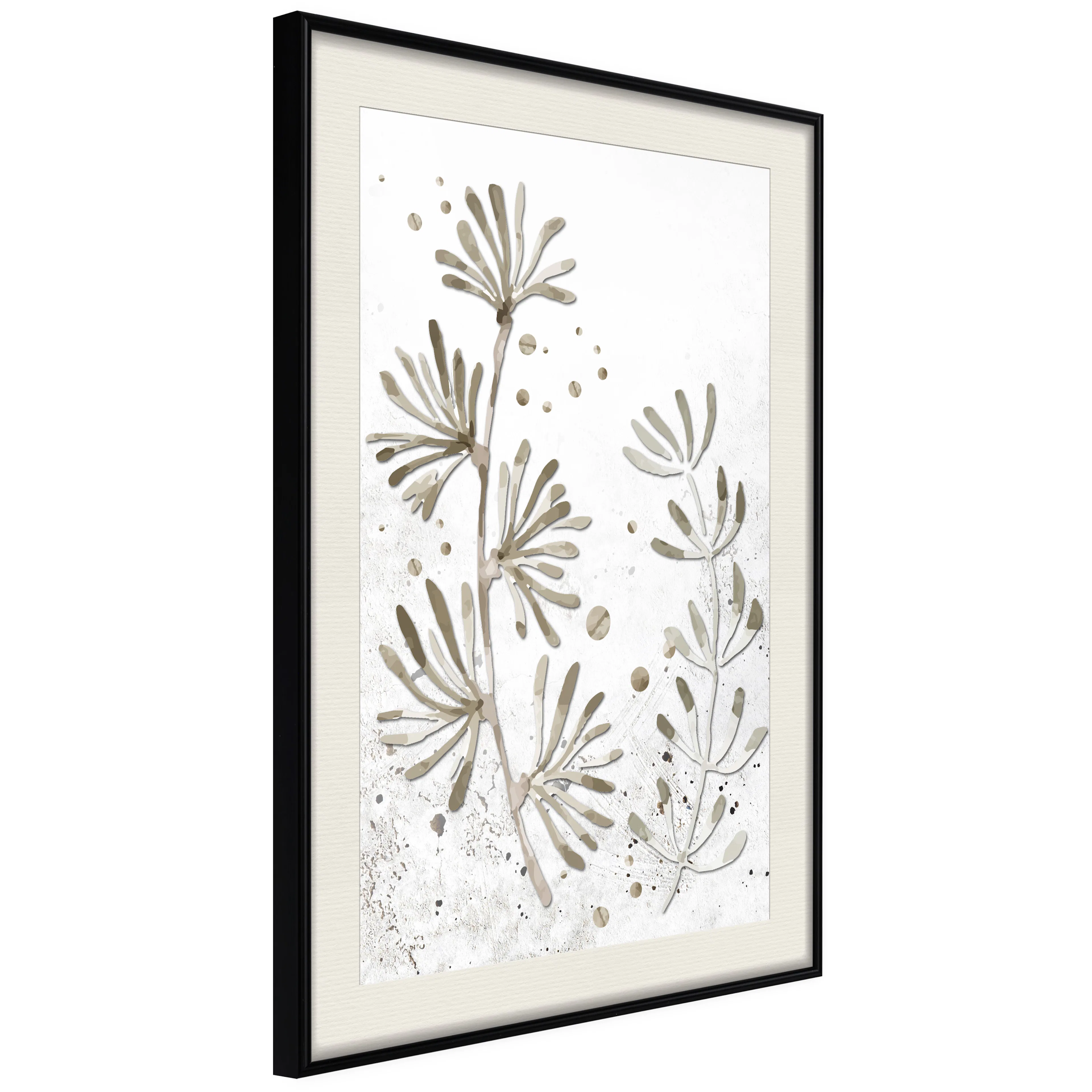 Passepartouten i écru betonar färgern på affischen och skapar en extra kontrast mellan grafiken, ramen och väggen. Dessutom ger den ramen ett svagt tredimensionellt intryck och fungerar även som ett skyddslager som ytterligare skyddar afischen. Affischen är säkrad med akrylglas och en hänganordning finns på ramens baksida.