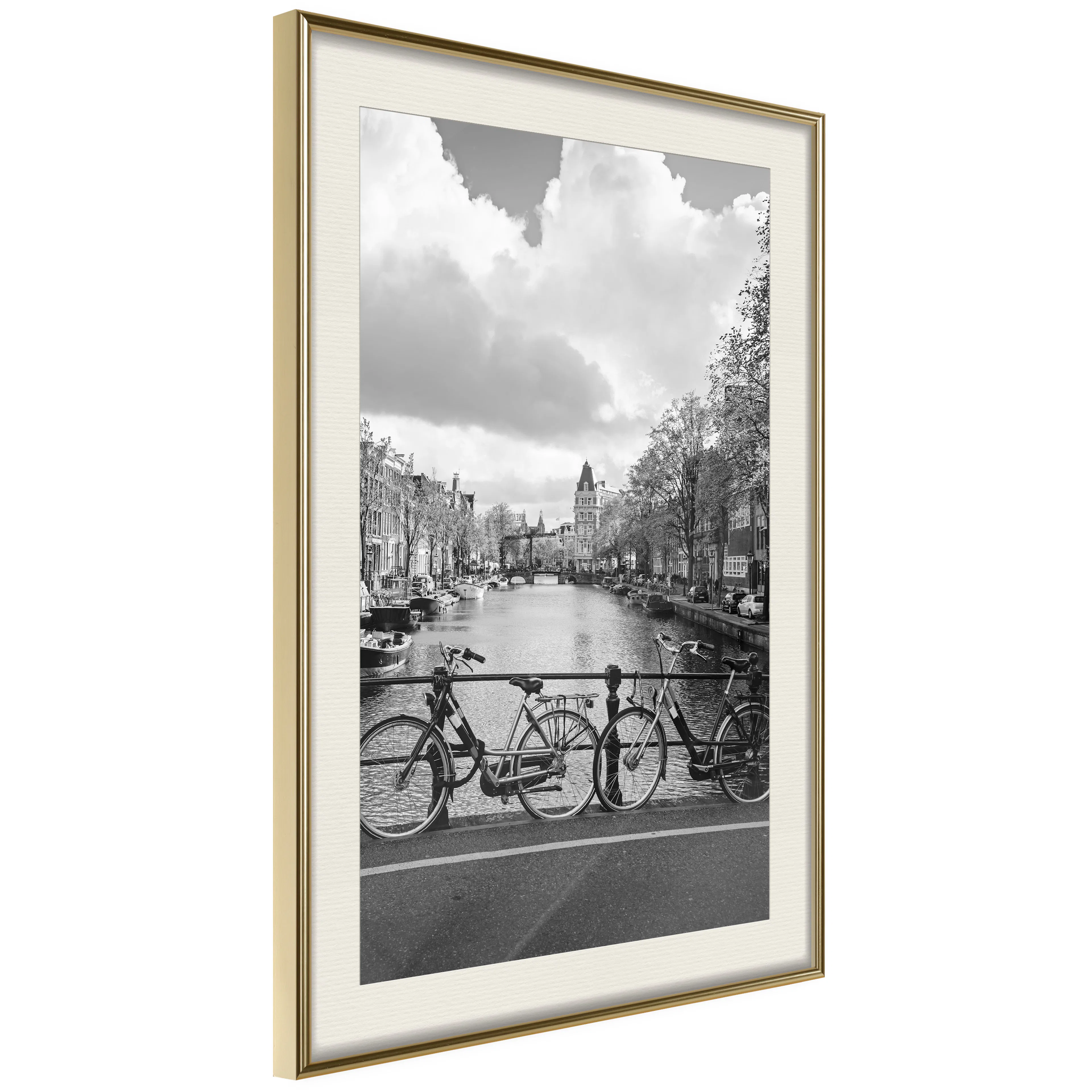 Poster Artgeist Affisch Bikes On BridgeGuld ram, 30x45 cm