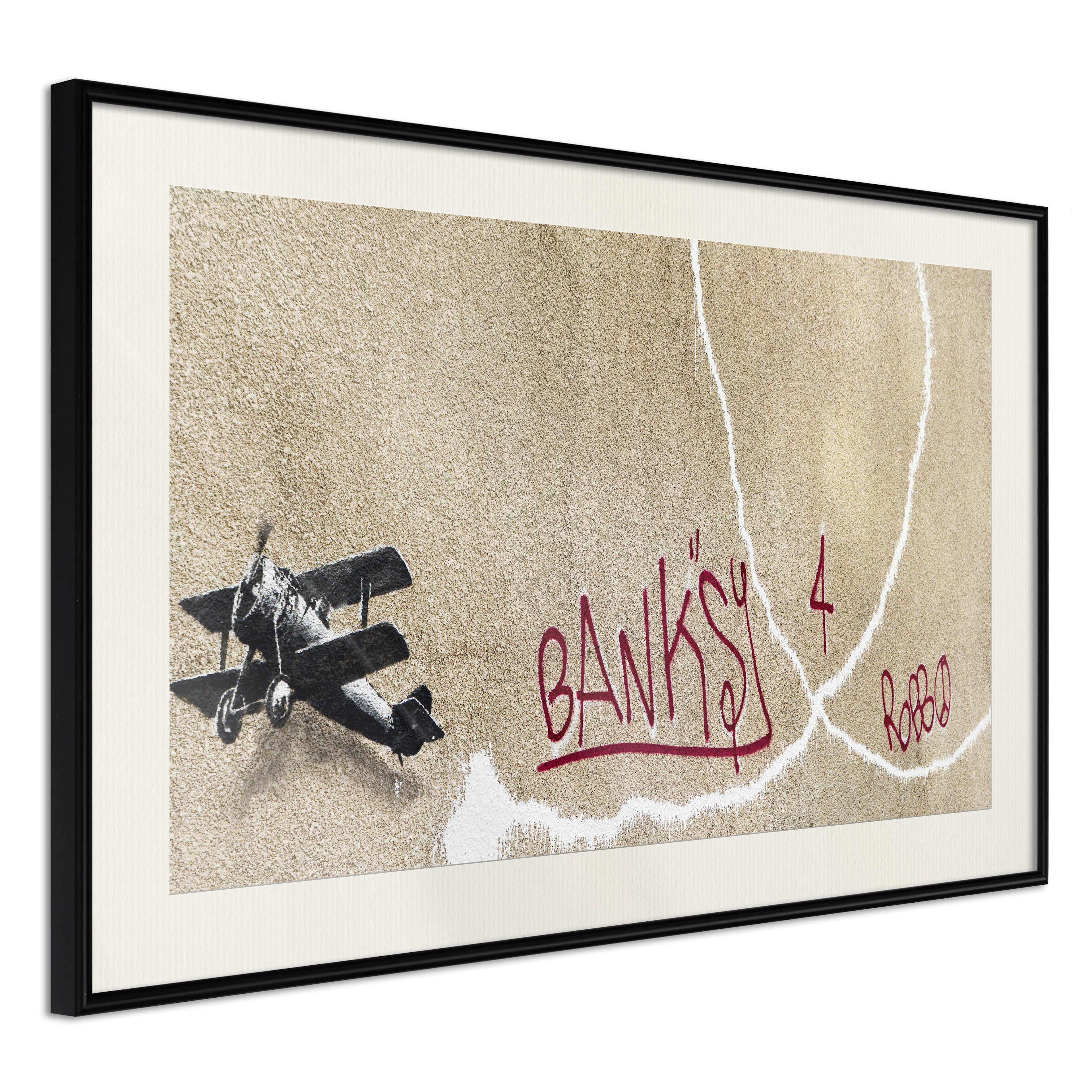 Passepartouten i écru betonar färgern på affischen och skapar en extra kontrast mellan grafiken, ramen och väggen. Dessutom ger den ramen ett svagt tredimensionellt intryck och fungerar även som ett skyddslager som ytterligare skyddar afischen. Affischen är säkrad med akrylglas och en hänganordning finns på ramens baksida.