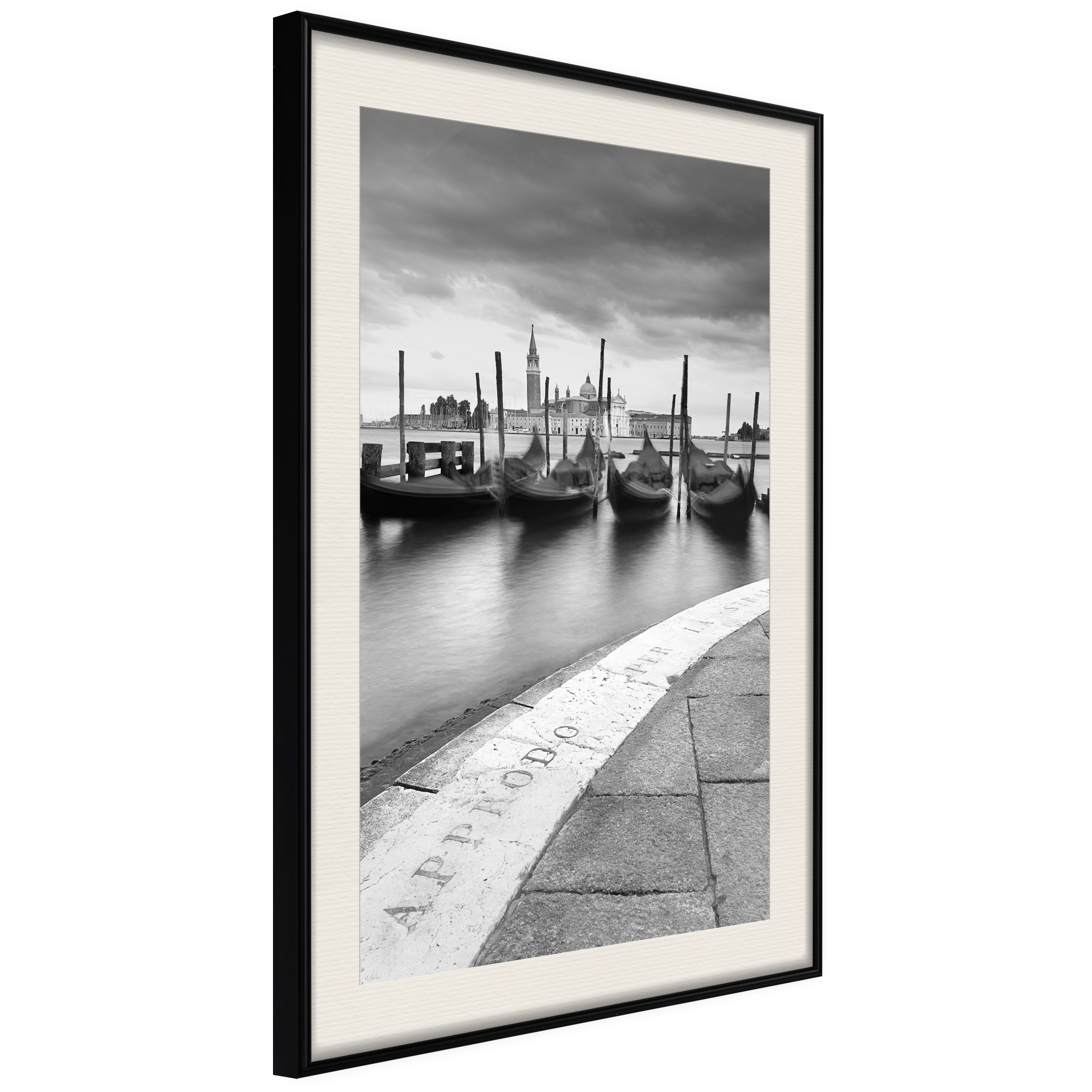 Passepartouten i écru betonar färgern på affischen och skapar en extra kontrast mellan grafiken, ramen och väggen. Dessutom ger den ramen ett svagt tredimensionellt intryck och fungerar även som ett skyddslager som ytterligare skyddar afischen. Affischen är säkrad med akrylglas och en hänganordning finns på ramens baksida.