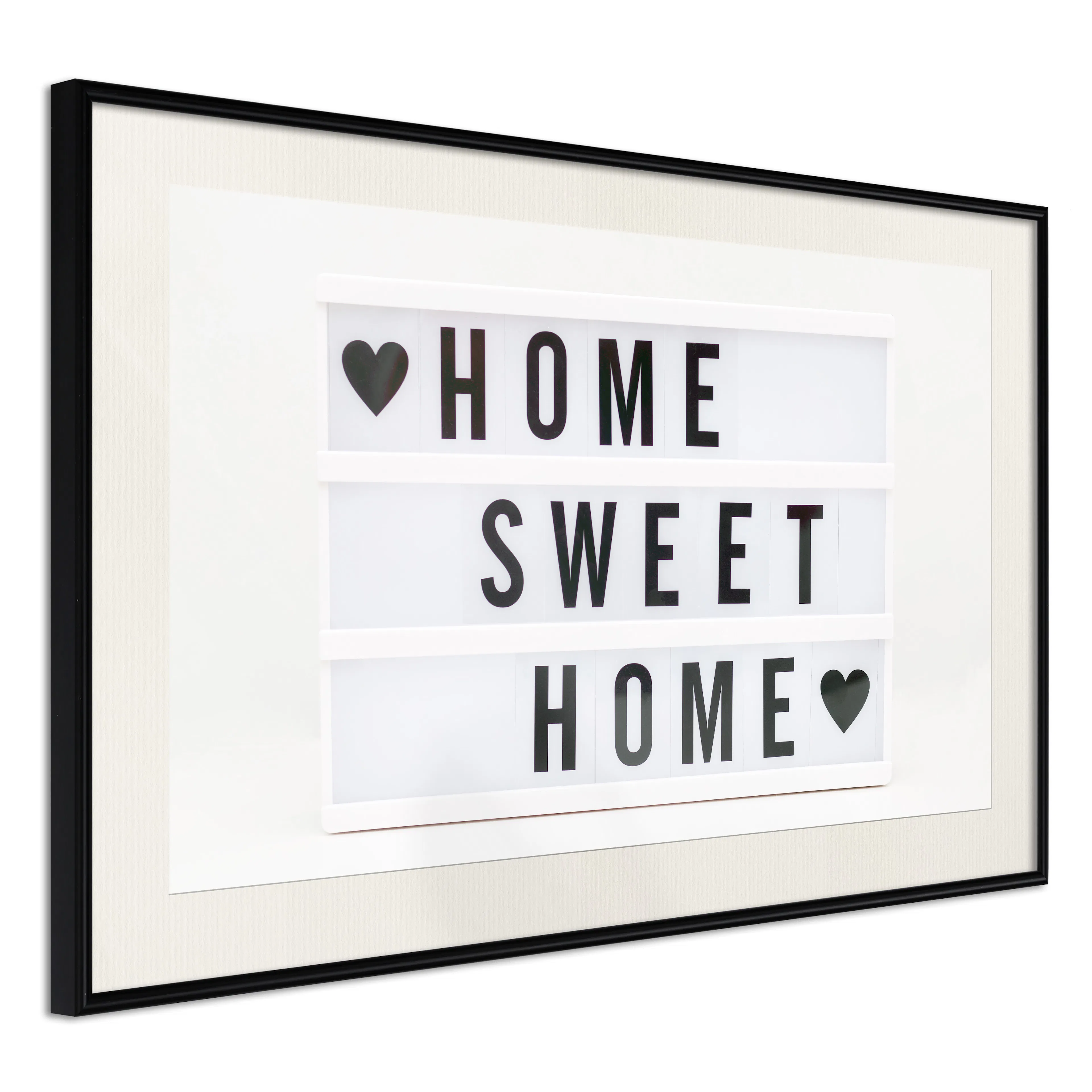 Passepartouten i écru betonar färgern på affischen och skapar en extra kontrast mellan grafiken, ramen och väggen. Dessutom ger den ramen ett svagt tredimensionellt intryck och fungerar även som ett skyddslager som ytterligare skyddar afischen. Affischen är säkrad med akrylglas och en hänganordning finns på ramens baksida.