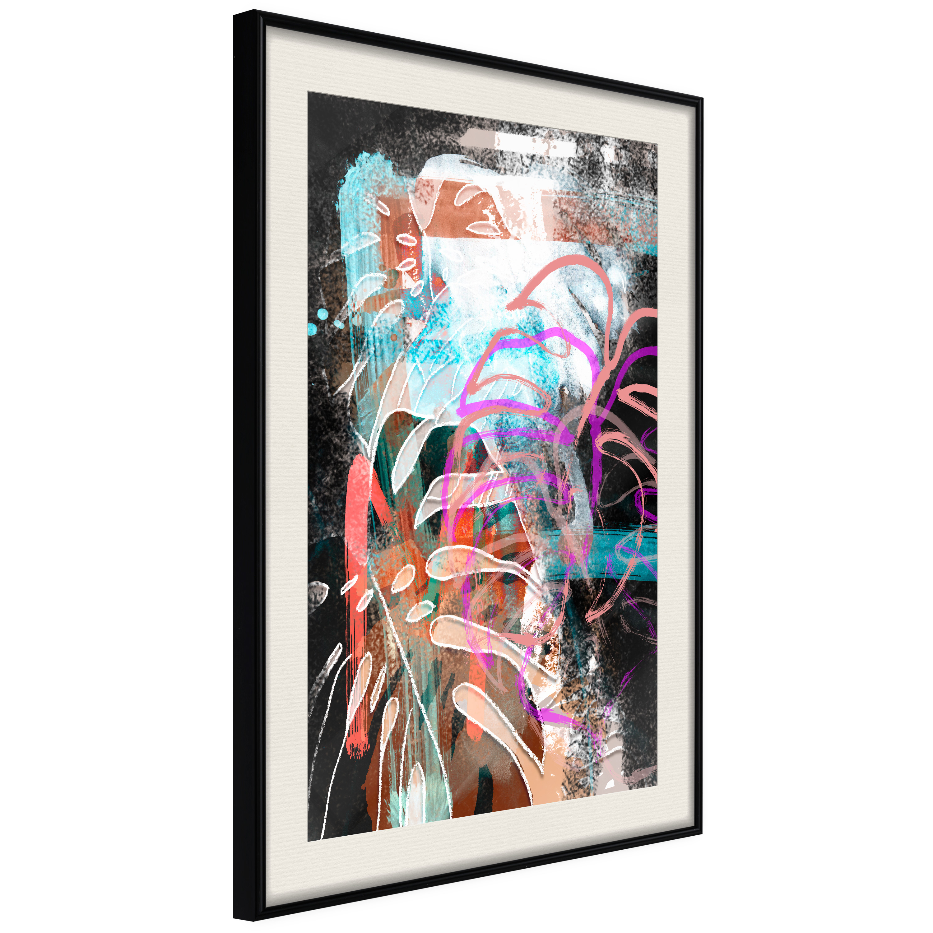Passepartouten i écru betonar färgern på affischen och skapar en extra kontrast mellan grafiken, ramen och väggen. Dessutom ger den ramen ett svagt tredimensionellt intryck och fungerar även som ett skyddslager som ytterligare skyddar afischen. Affischen är säkrad med akrylglas och en hänganordning finns på ramens baksida.