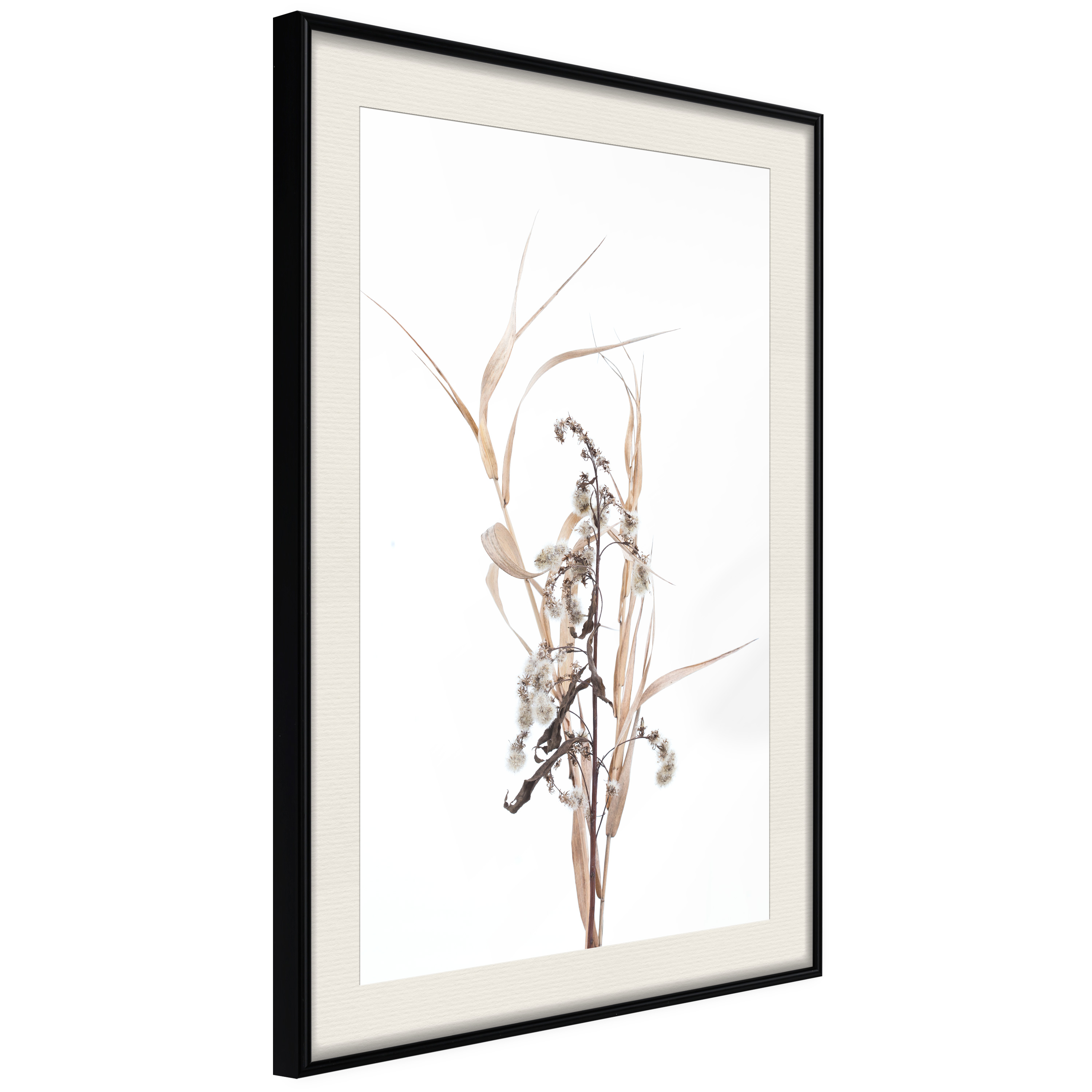 Passepartouten i écru betonar färgern på affischen och skapar en extra kontrast mellan grafiken, ramen och väggen. Dessutom ger den ramen ett svagt tredimensionellt intryck och fungerar även som ett skyddslager som ytterligare skyddar afischen. Affischen är säkrad med akrylglas och en hänganordning finns på ramens baksida.