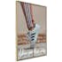 Affischen är inramad i en minimalistisk, lätt ram som gör den mer synlig mot väggen. Affischen är säkrad med akrylglas och en hänganordning finns på ramens baksida.