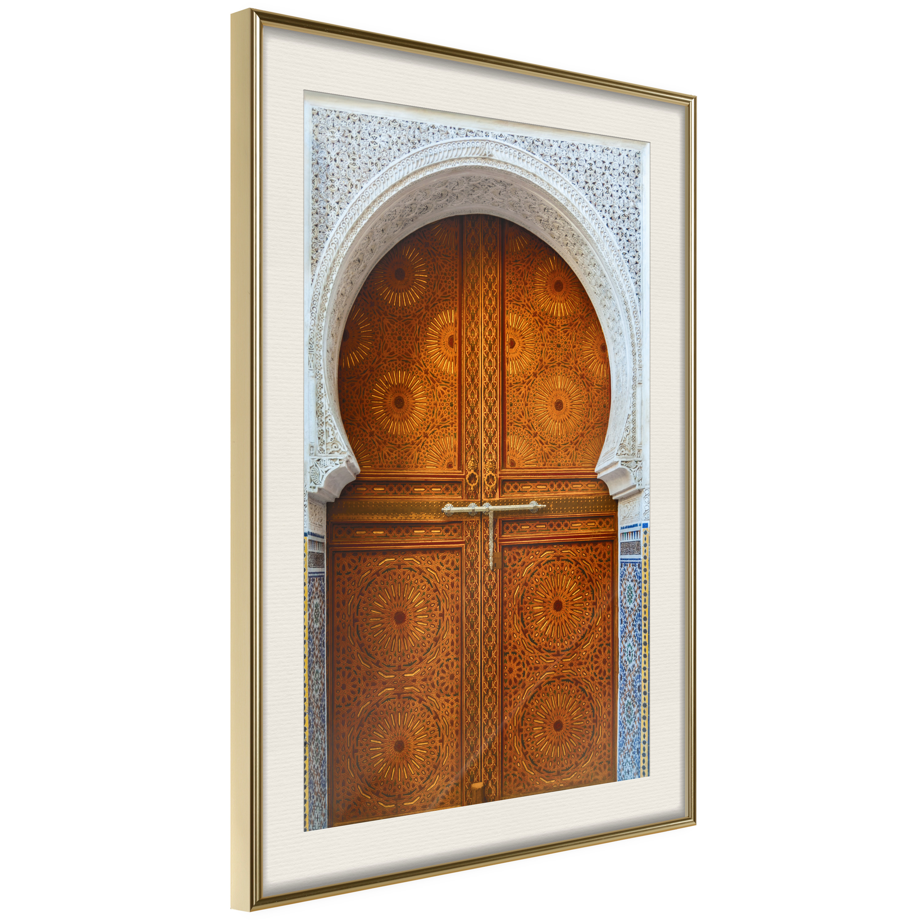 Passepartouten i écru betonar färgern på affischen och skapar en extra kontrast mellan grafiken, ramen och väggen. Dessutom ger den ramen ett svagt tredimensionellt intryck och fungerar även som ett skyddslager som ytterligare skyddar afischen. Affischen är säkrad med akrylglas och en hänganordning finns på ramens baksida.