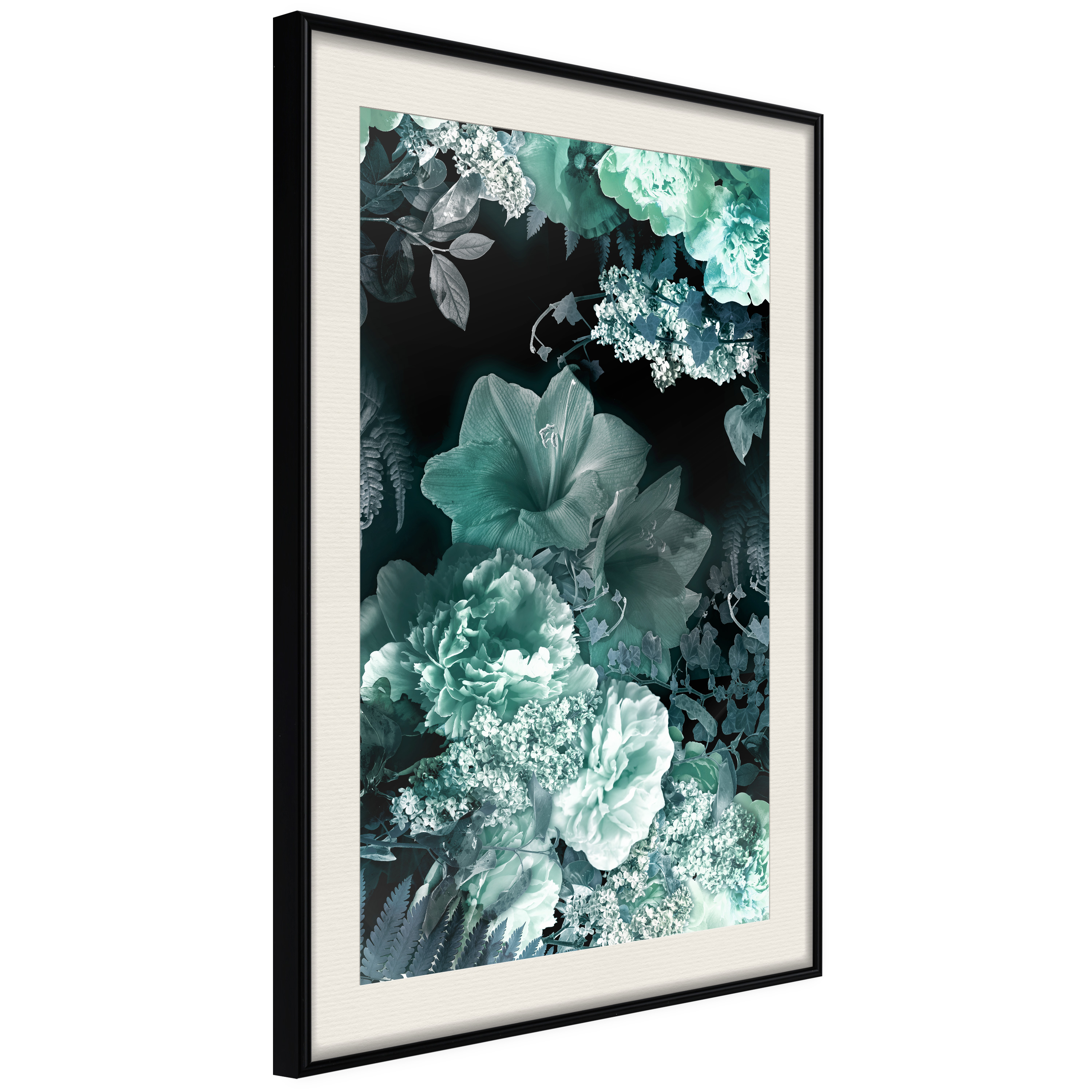 Passepartouten i écru betonar färgern på affischen och skapar en extra kontrast mellan grafiken, ramen och väggen. Dessutom ger den ramen ett svagt tredimensionellt intryck och fungerar även som ett skyddslager som ytterligare skyddar afischen. Affischen är säkrad med akrylglas och en hänganordning finns på ramens baksida.