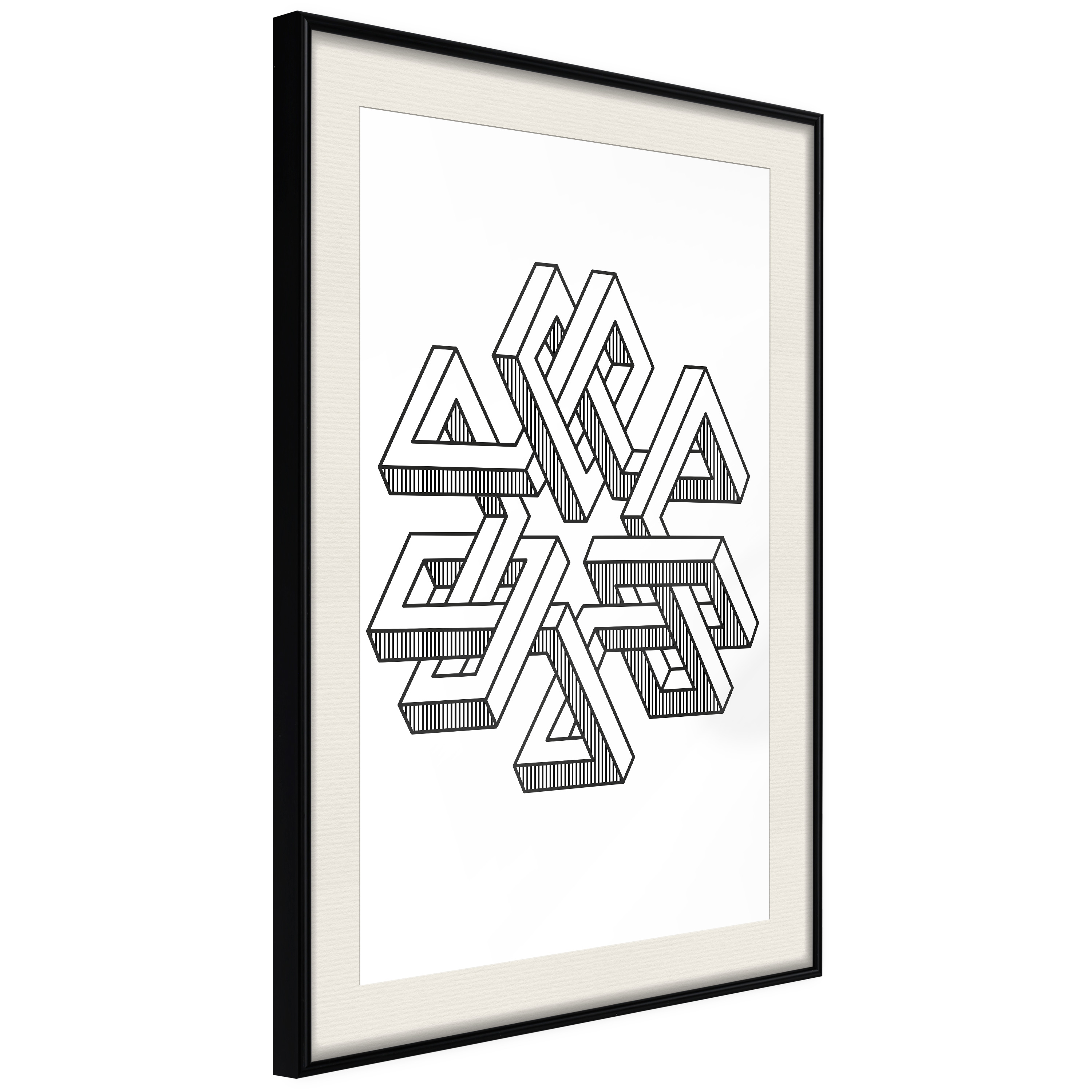 Passepartouten i écru betonar färgern på affischen och skapar en extra kontrast mellan grafiken, ramen och väggen. Dessutom ger den ramen ett svagt tredimensionellt intryck och fungerar även som ett skyddslager som ytterligare skyddar afischen. Affischen är säkrad med akrylglas och en hänganordning finns på ramens baksida.