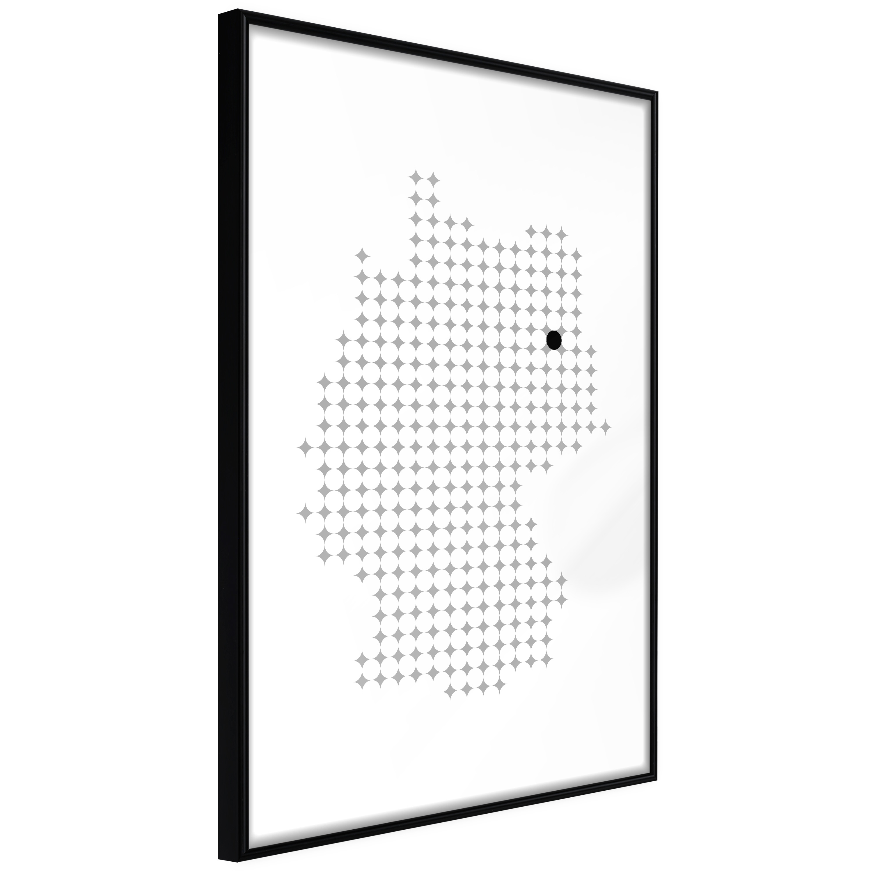 Affischen är inramad i en minimalistisk, lätt ram som gör den mer synlig mot väggen. Affischen är säkrad med akrylglas och en hänganordning finns på ramens baksida.
