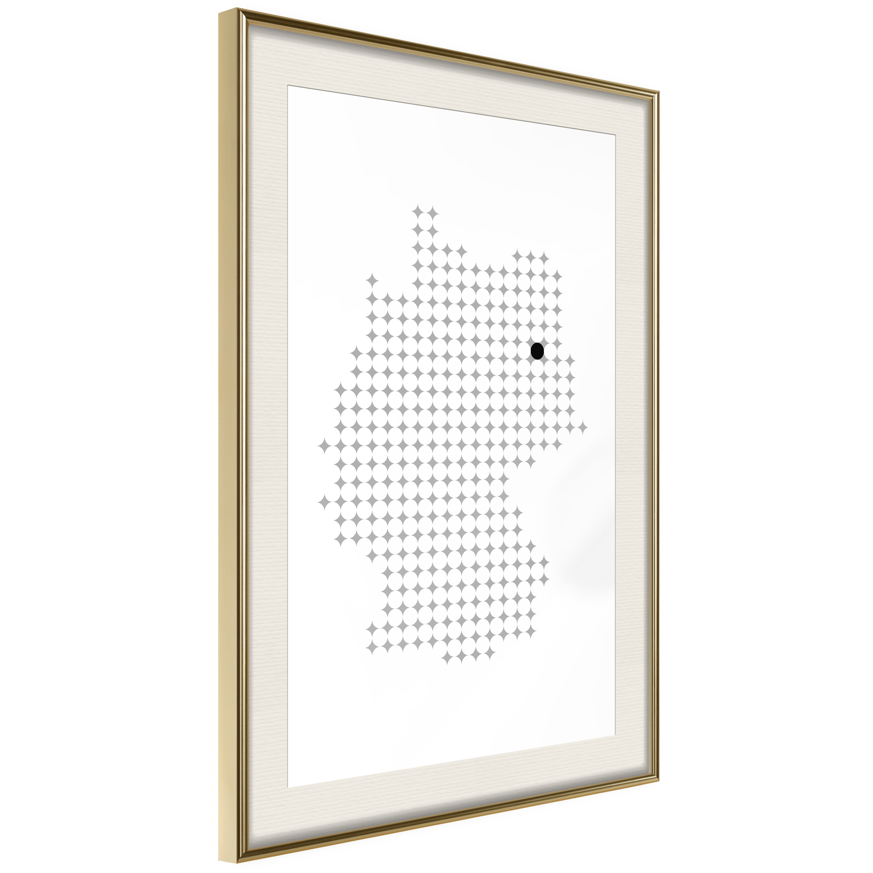 Passepartouten i écru betonar färgern på affischen och skapar en extra kontrast mellan grafiken, ramen och väggen. Dessutom ger den ramen ett svagt tredimensionellt intryck och fungerar även som ett skyddslager som ytterligare skyddar afischen. Affischen är säkrad med akrylglas och en hänganordning finns på ramens baksida.