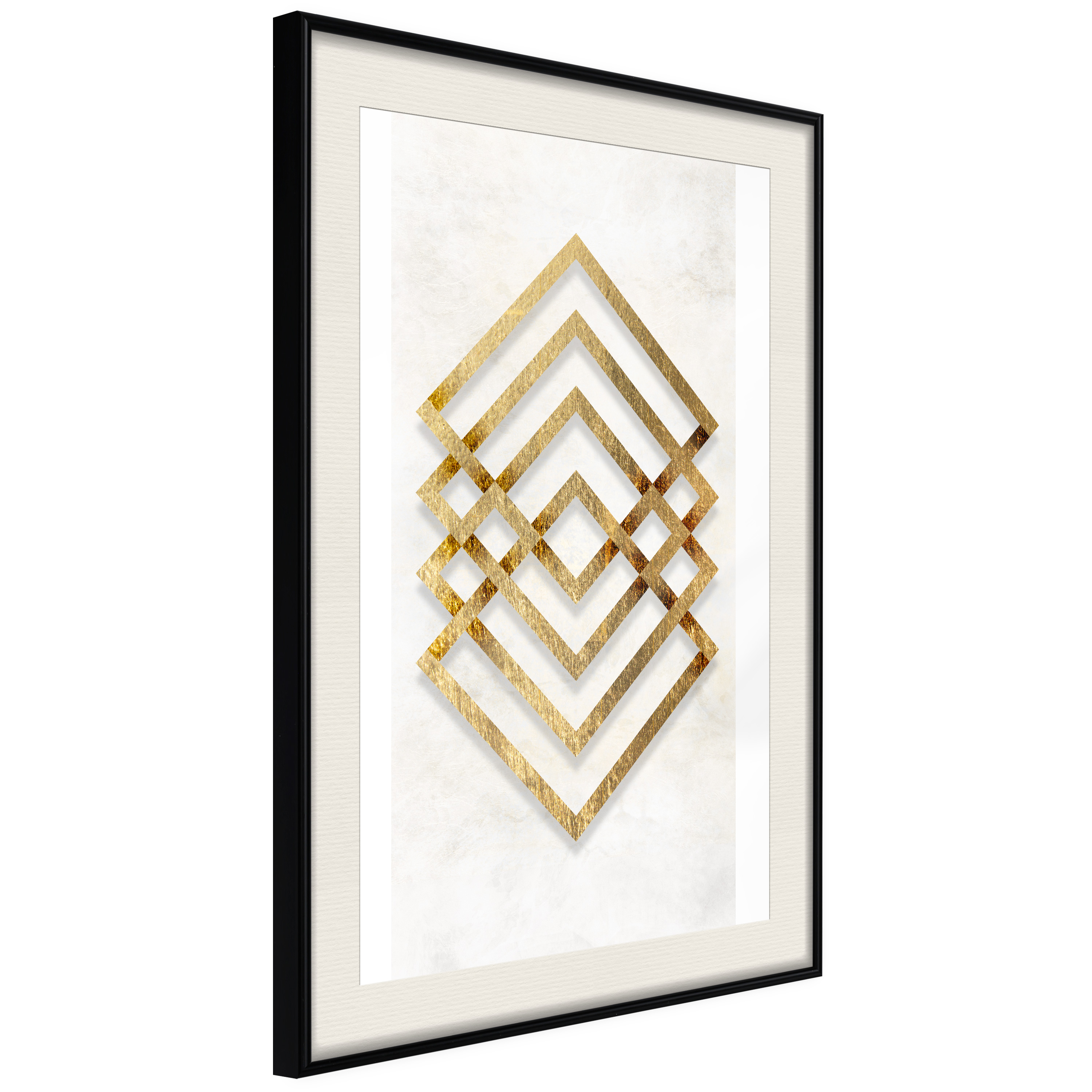 Passepartouten i écru betonar färgern på affischen och skapar en extra kontrast mellan grafiken, ramen och väggen. Dessutom ger den ramen ett svagt tredimensionellt intryck och fungerar även som ett skyddslager som ytterligare skyddar afischen. Affischen är säkrad med akrylglas och en hänganordning finns på ramens baksida.