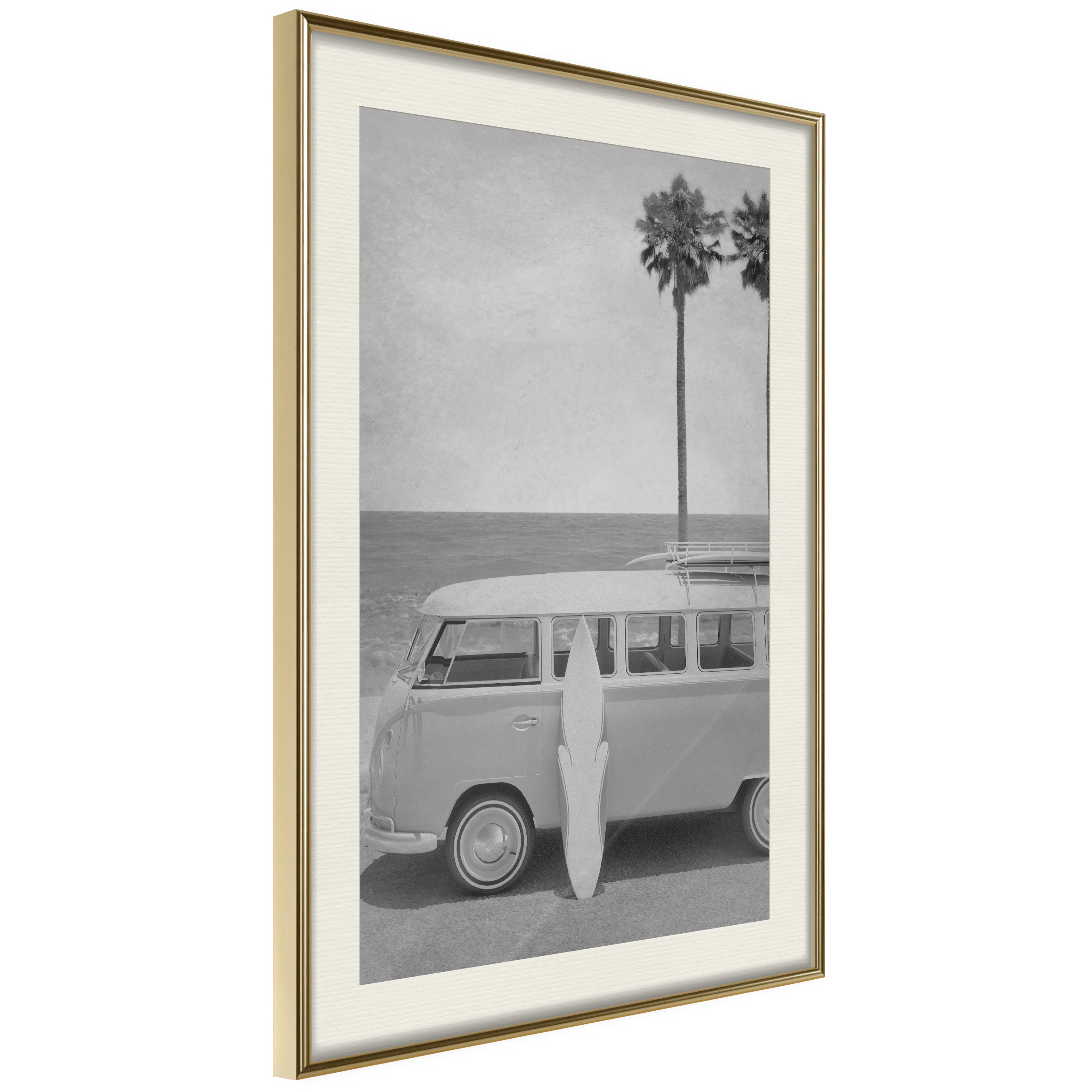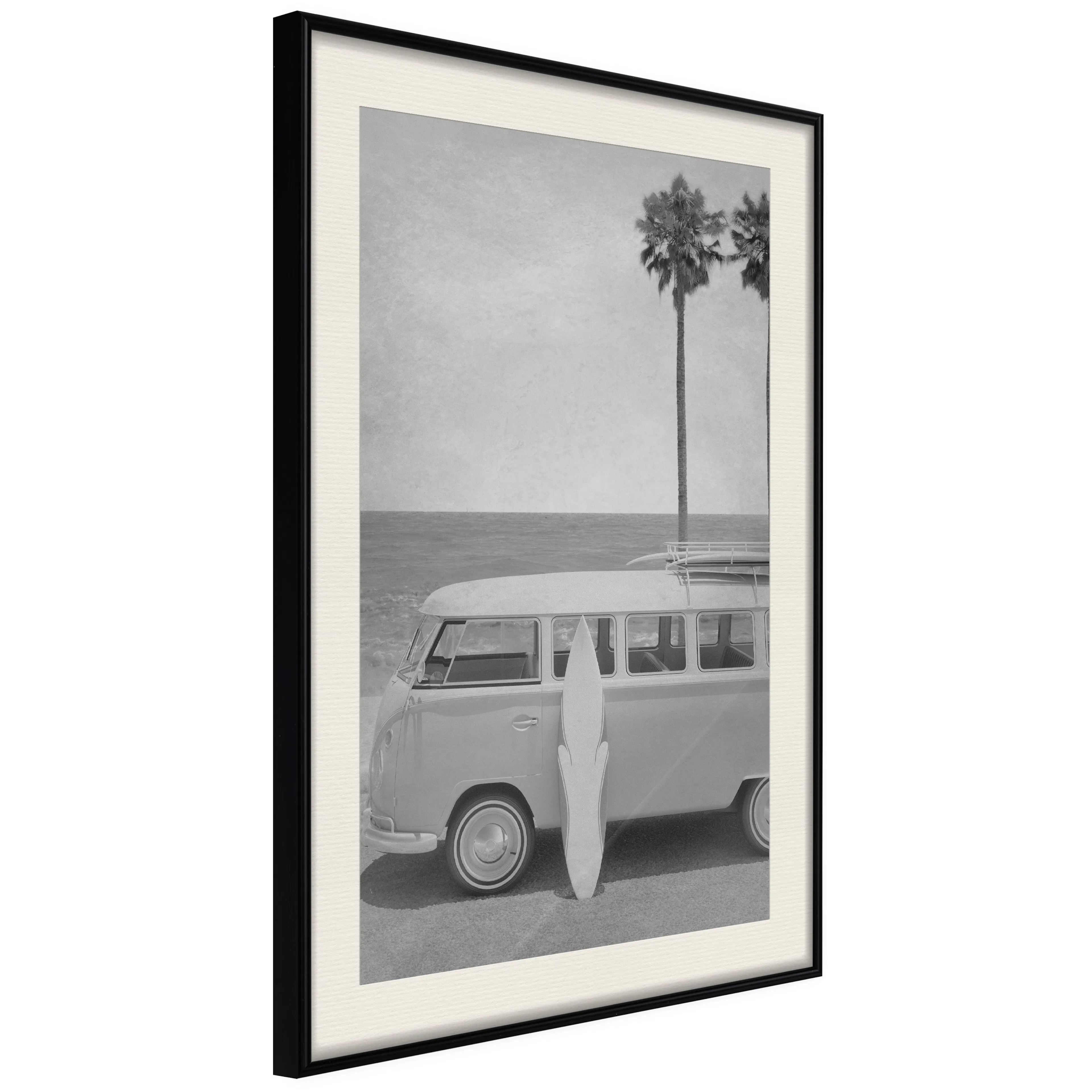 Passepartouten i écru betonar färgern på affischen och skapar en extra kontrast mellan grafiken, ramen och väggen. Dessutom ger den ramen ett svagt tredimensionellt intryck och fungerar även som ett skyddslager som ytterligare skyddar afischen. Affischen är säkrad med akrylglas och en hänganordning finns på ramens baksida.