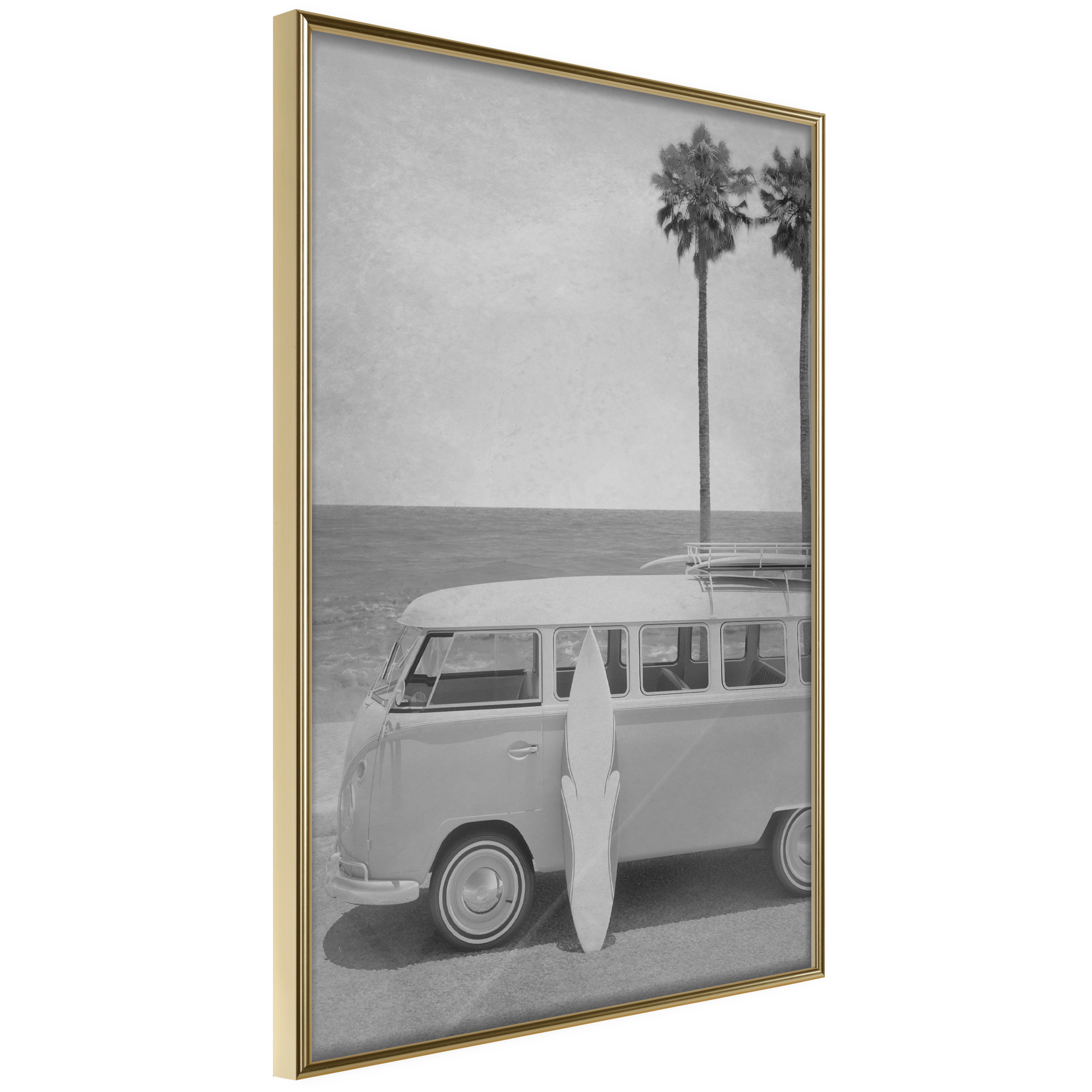 Affischen är inramad i en minimalistisk, lätt ram som gör den mer synlig mot väggen. Affischen är säkrad med akrylglas och en hänganordning finns på ramens baksida.
