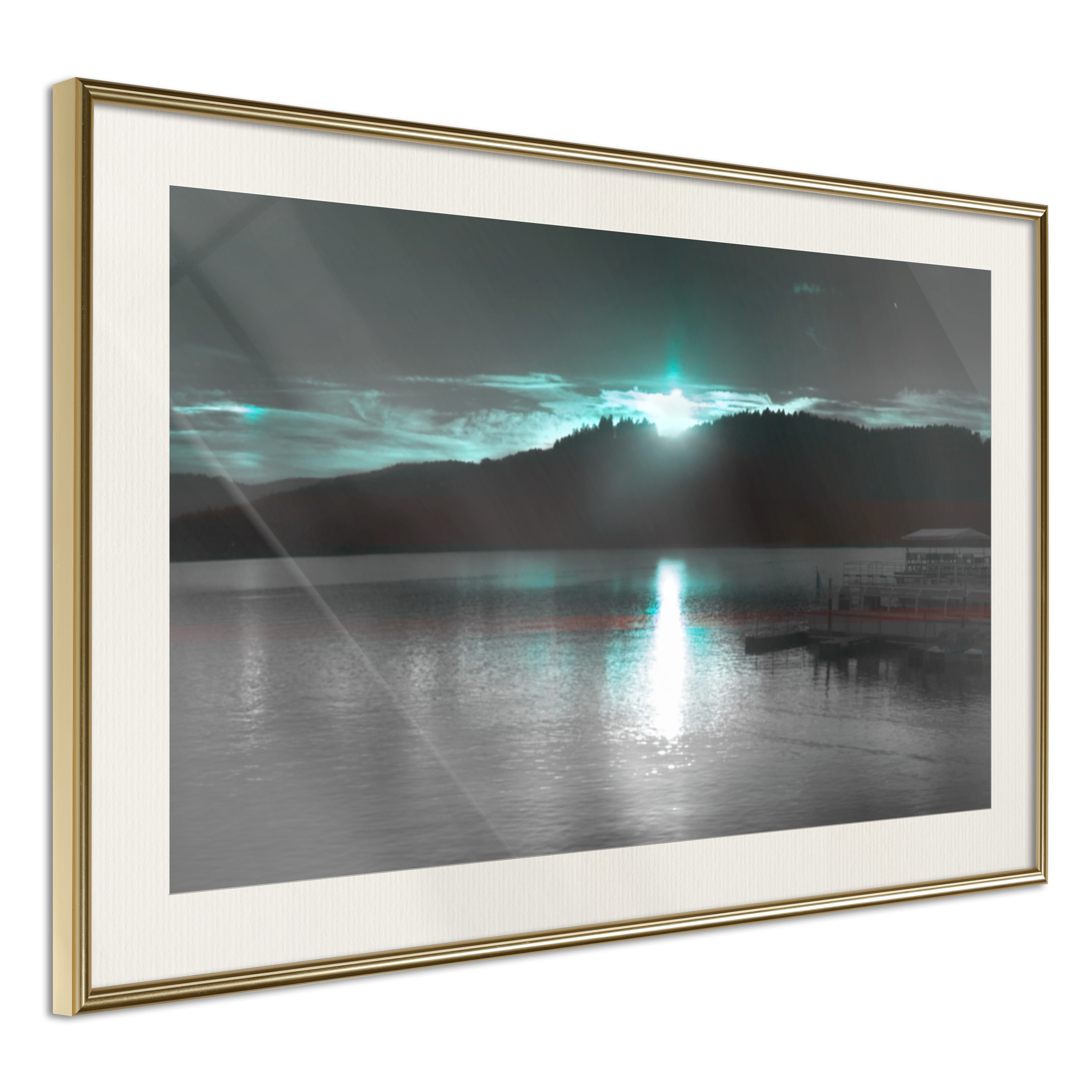 Passepartouten i écru betonar färgern på affischen och skapar en extra kontrast mellan grafiken, ramen och väggen. Dessutom ger den ramen ett svagt tredimensionellt intryck och fungerar även som ett skyddslager som ytterligare skyddar afischen. Affischen är säkrad med akrylglas och en hänganordning finns på ramens baksida.