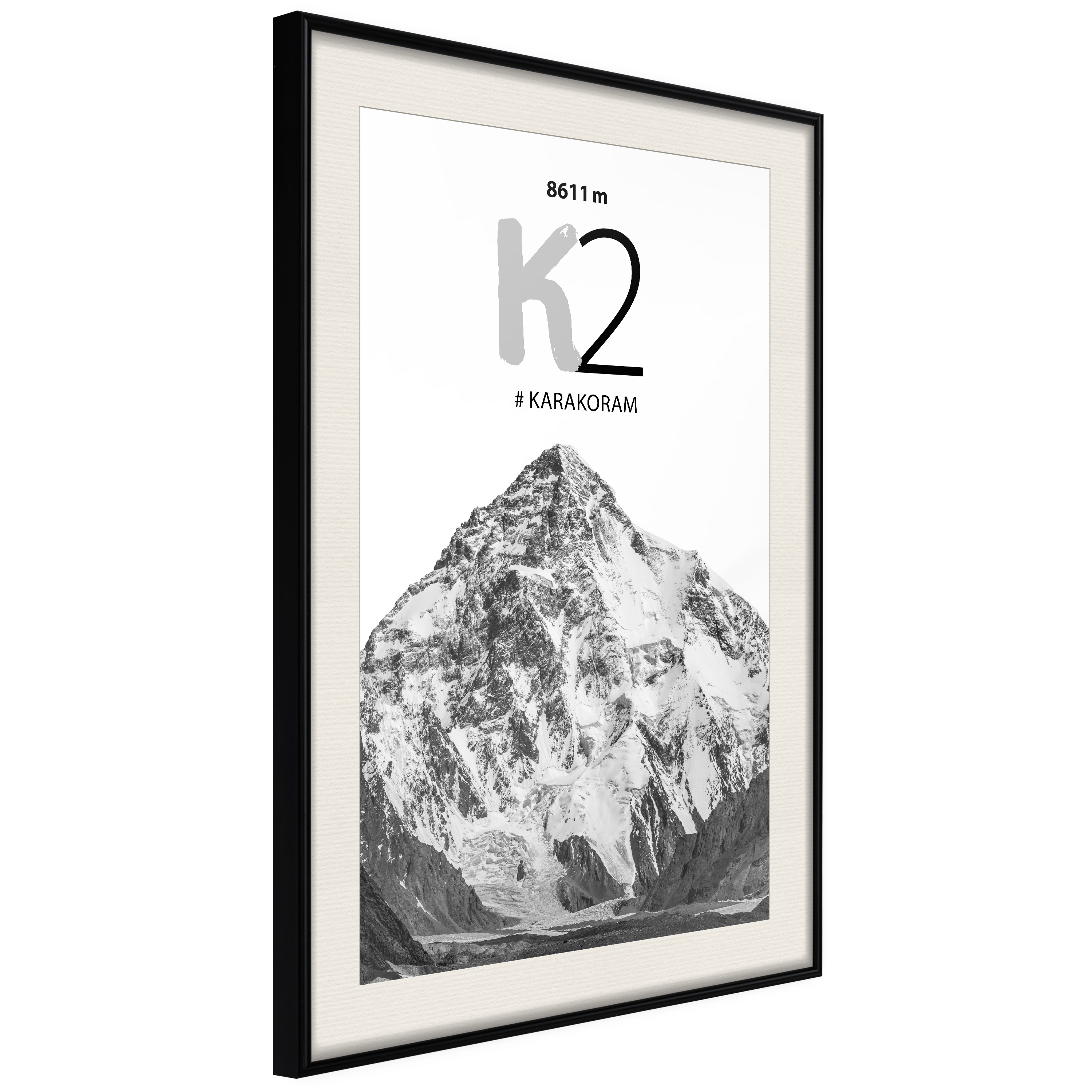 Passepartouten i écru betonar färgern på affischen och skapar en extra kontrast mellan grafiken, ramen och väggen. Dessutom ger den ramen ett svagt tredimensionellt intryck och fungerar även som ett skyddslager som ytterligare skyddar afischen. Affischen är säkrad med akrylglas och en hänganordning finns på ramens baksida.