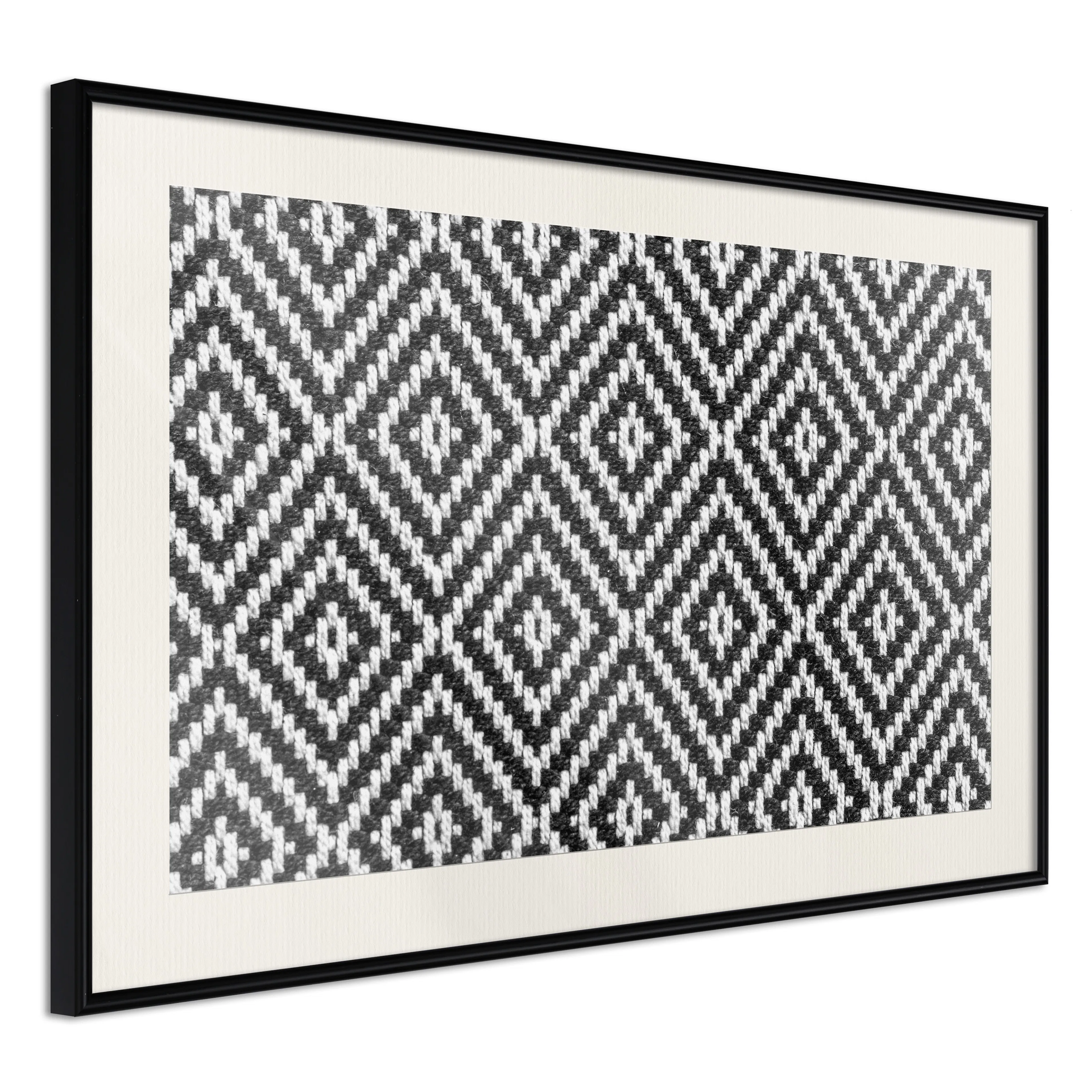 Passepartouten i écru betonar färgern på affischen och skapar en extra kontrast mellan grafiken, ramen och väggen. Dessutom ger den ramen ett svagt tredimensionellt intryck och fungerar även som ett skyddslager som ytterligare skyddar afischen. Affischen är säkrad med akrylglas och en hänganordning finns på ramens baksida.