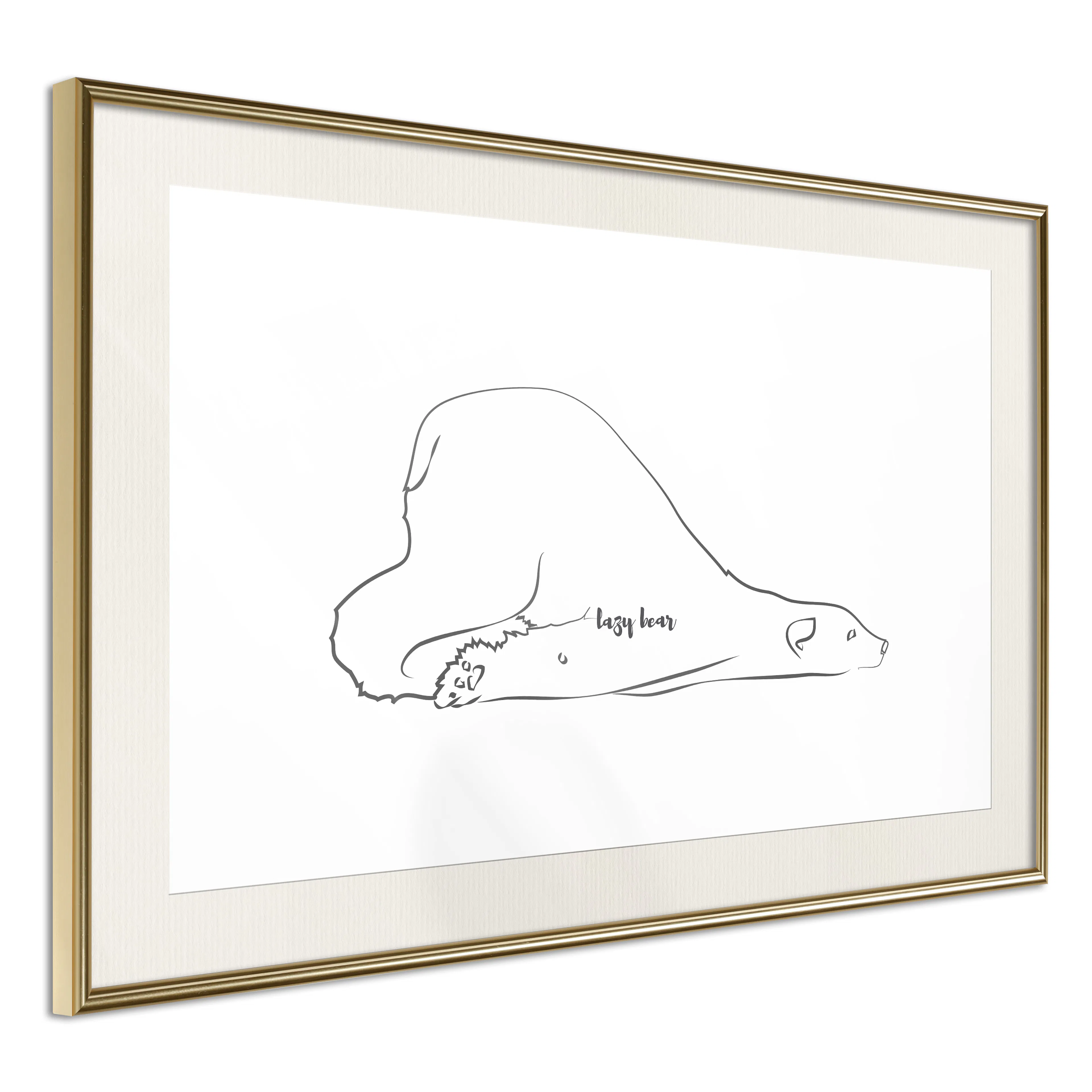 Poster Artgeist Affisch Lazy BearGuld ram, 45x30 cm