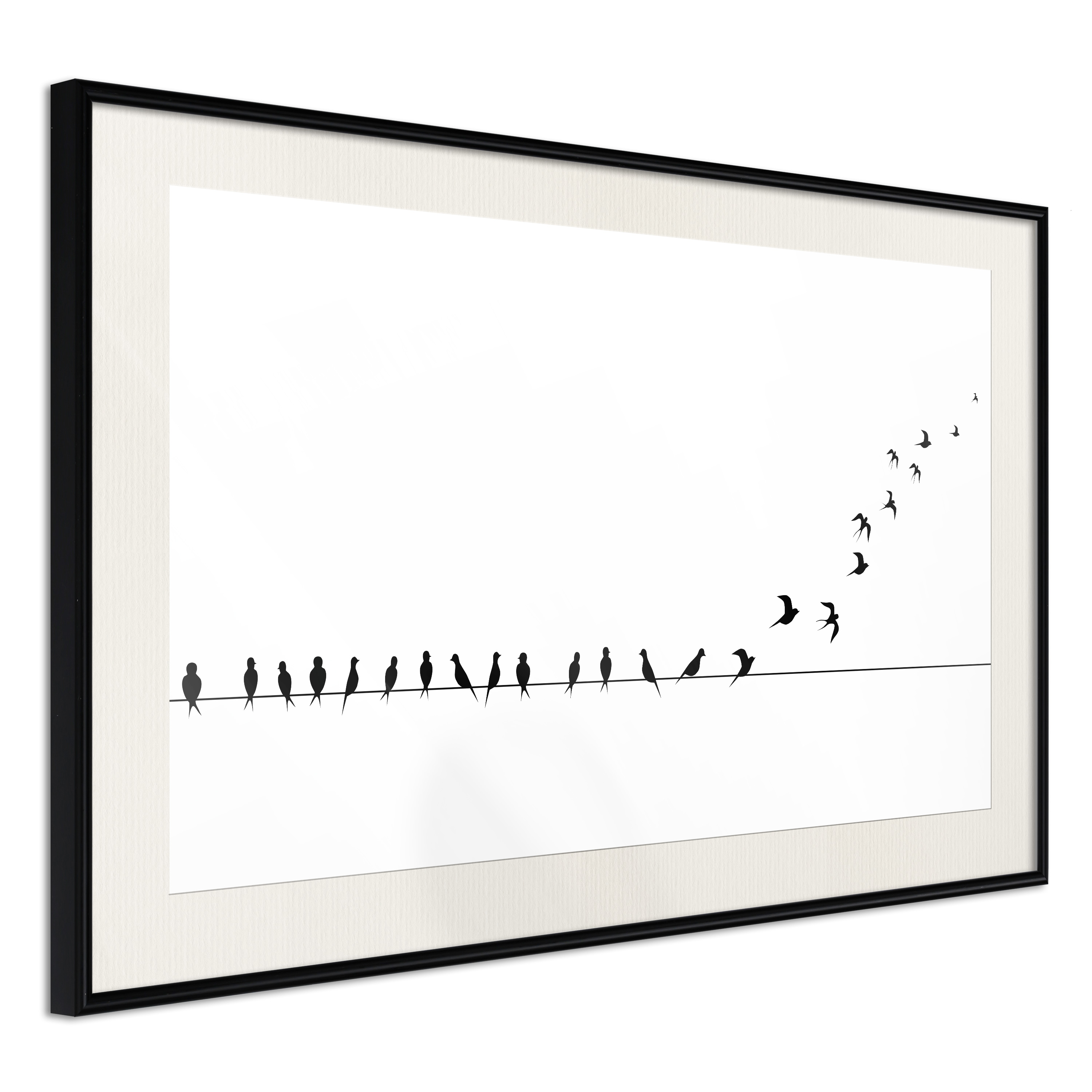 Affischen är inramad i en minimalistisk, lätt ram som gör den mer synlig mot väggen. Affischen är säkrad med akrylglas och en hänganordning finns på ramens baksida.