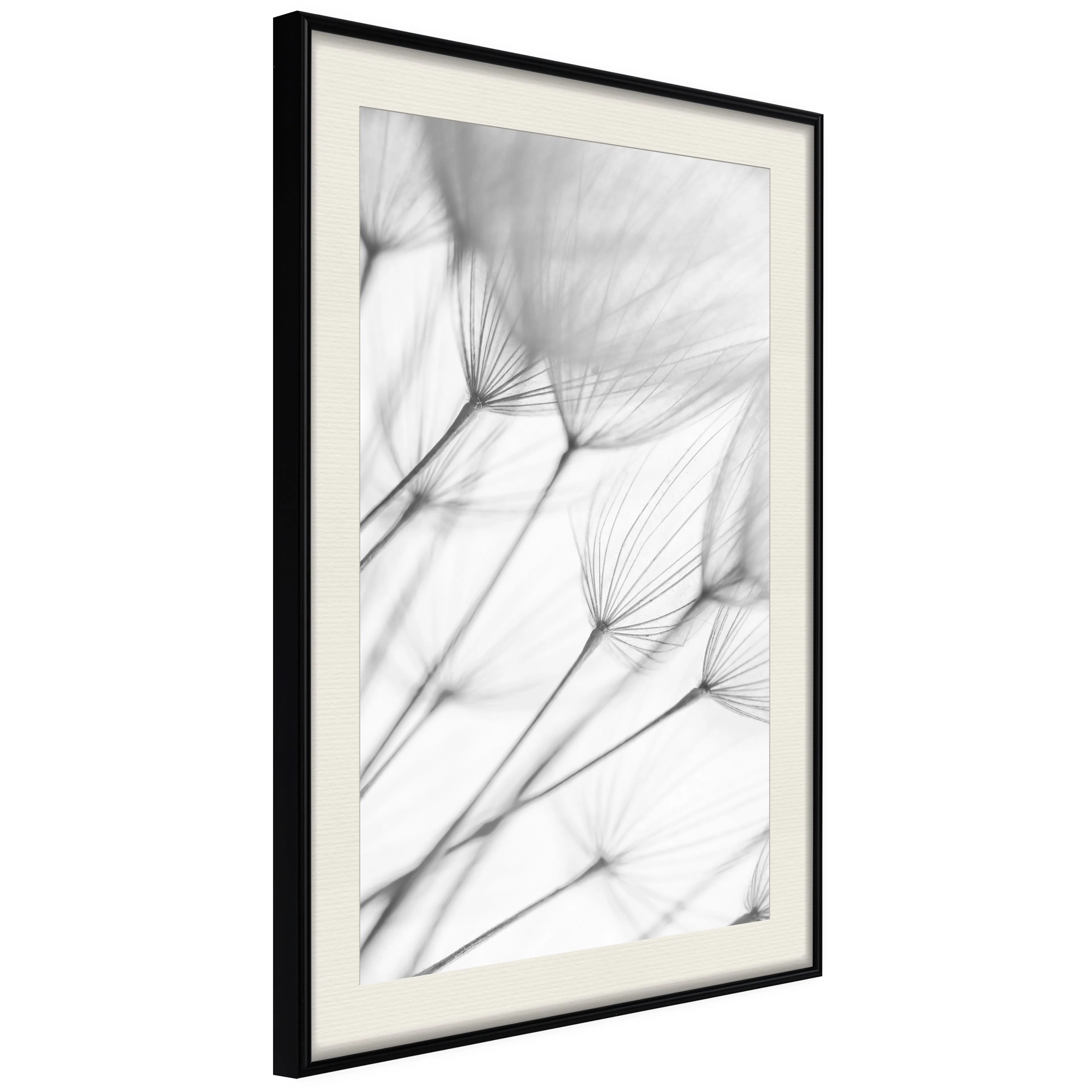 Passepartouten i écru betonar färgern på affischen och skapar en extra kontrast mellan grafiken, ramen och väggen. Dessutom ger den ramen ett svagt tredimensionellt intryck och fungerar även som ett skyddslager som ytterligare skyddar afischen. Affischen är säkrad med akrylglas och en hänganordning finns på ramens baksida.