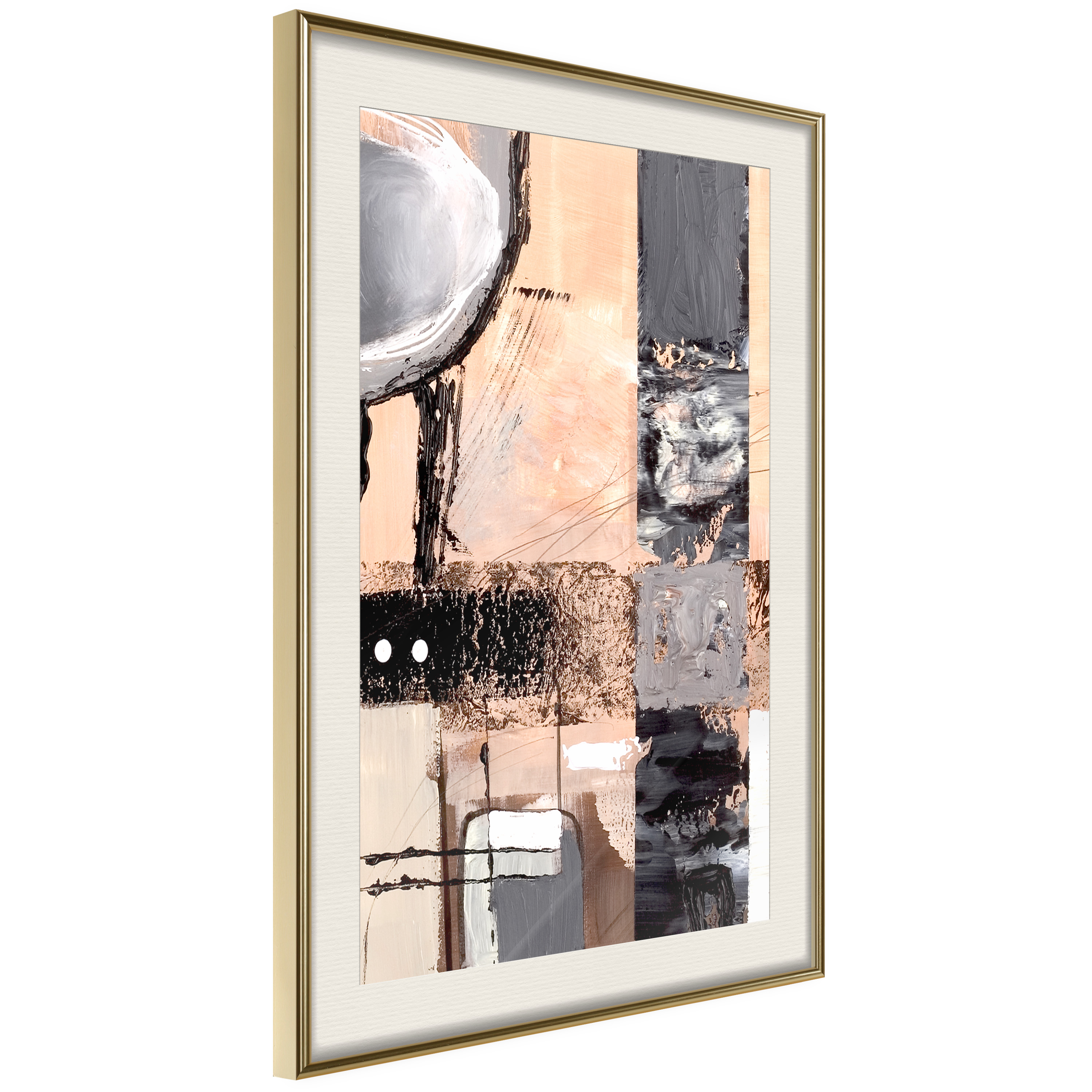 Passepartouten i écru betonar färgern på affischen och skapar en extra kontrast mellan grafiken, ramen och väggen. Dessutom ger den ramen ett svagt tredimensionellt intryck och fungerar även som ett skyddslager som ytterligare skyddar afischen. Affischen är säkrad med akrylglas och en hänganordning finns på ramens baksida.