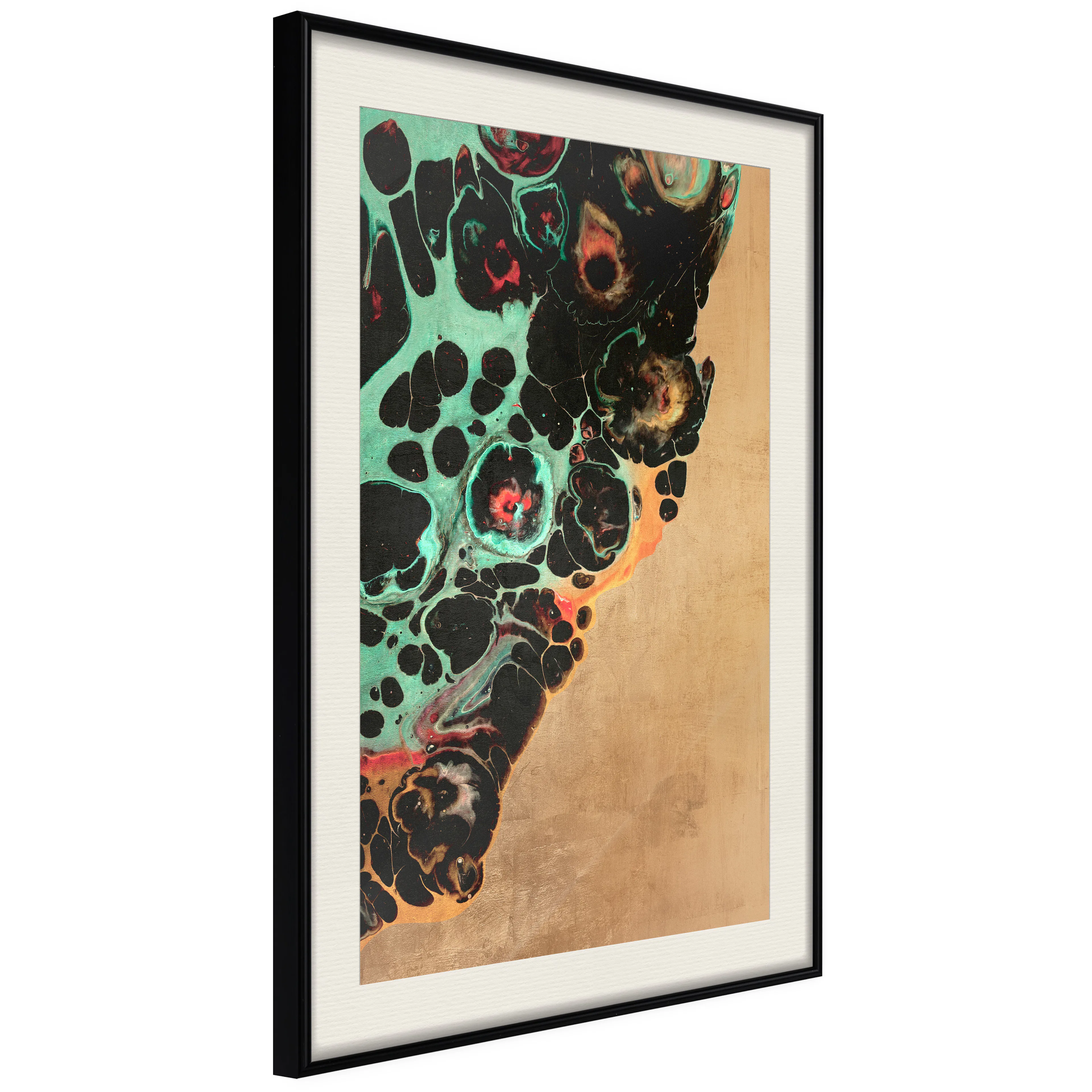 Passepartouten i écru betonar färgern på affischen och skapar en extra kontrast mellan grafiken, ramen och väggen. Dessutom ger den ramen ett svagt tredimensionellt intryck och fungerar även som ett skyddslager som ytterligare skyddar afischen. Affischen är säkrad med akrylglas och en hänganordning finns på ramens baksida.